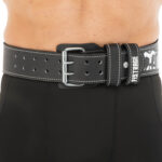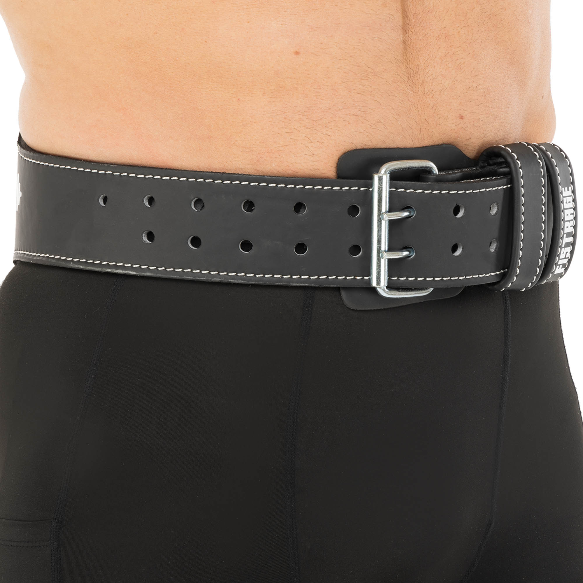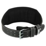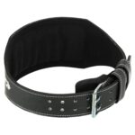 Фиксация осуществляется с помощью классической стальной пряжки, обеспечивающей стабильную посадку без риска ослабления во время тренировки.