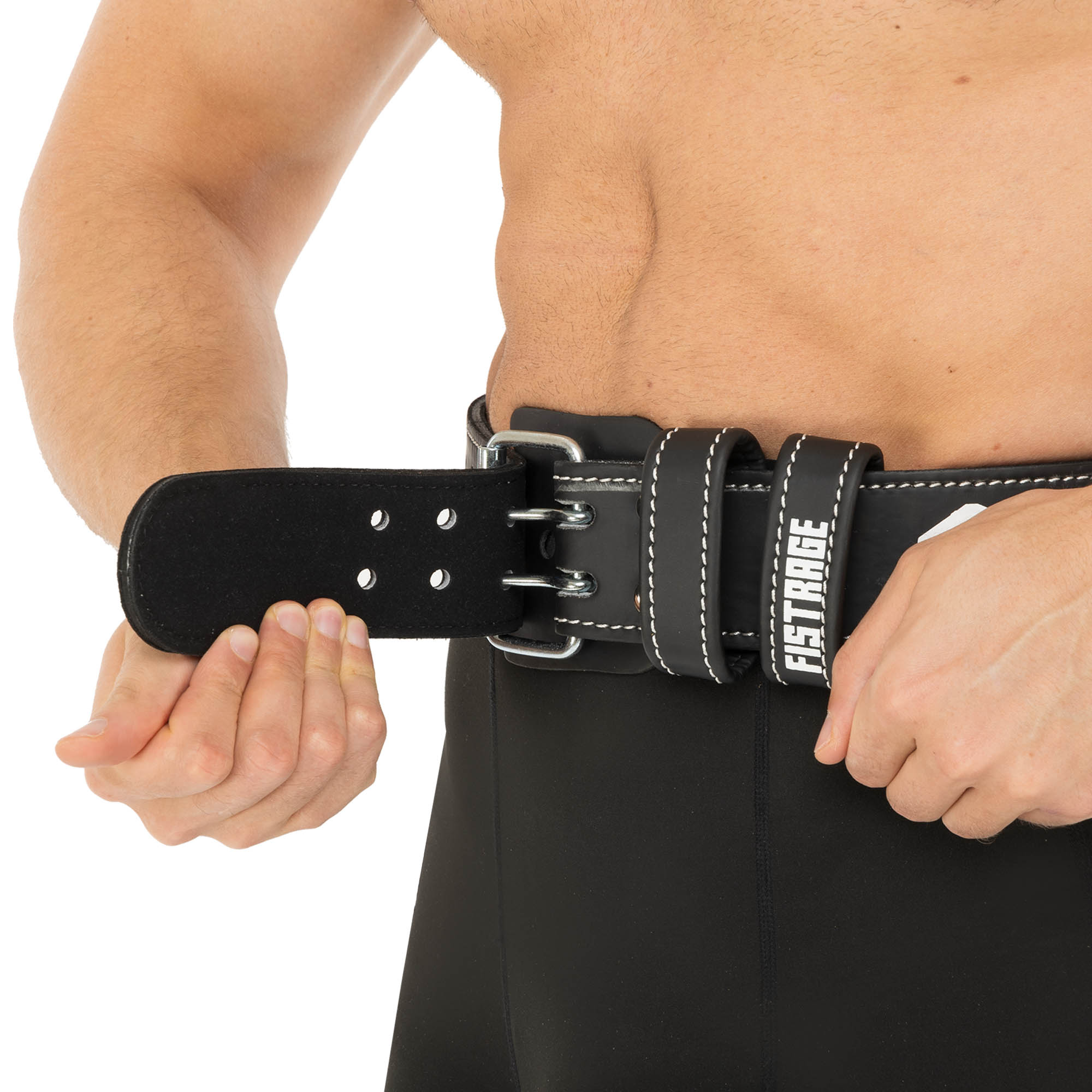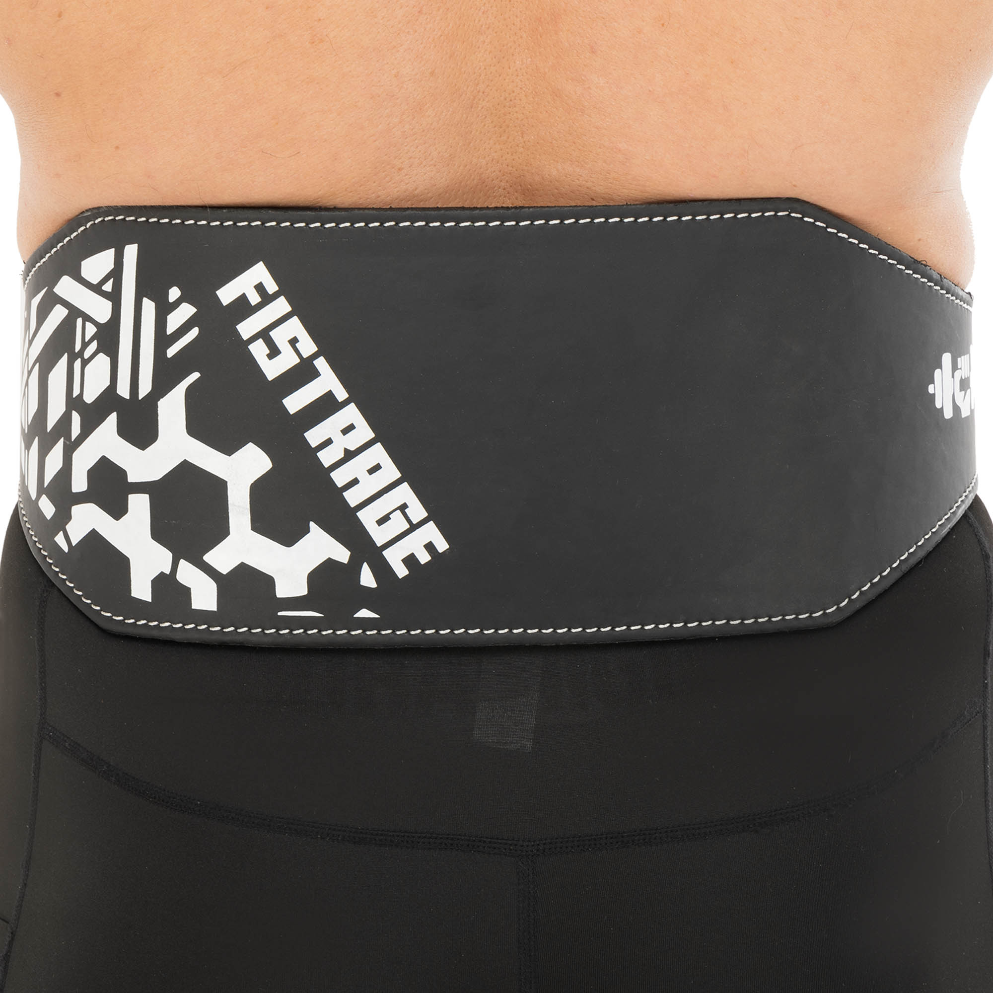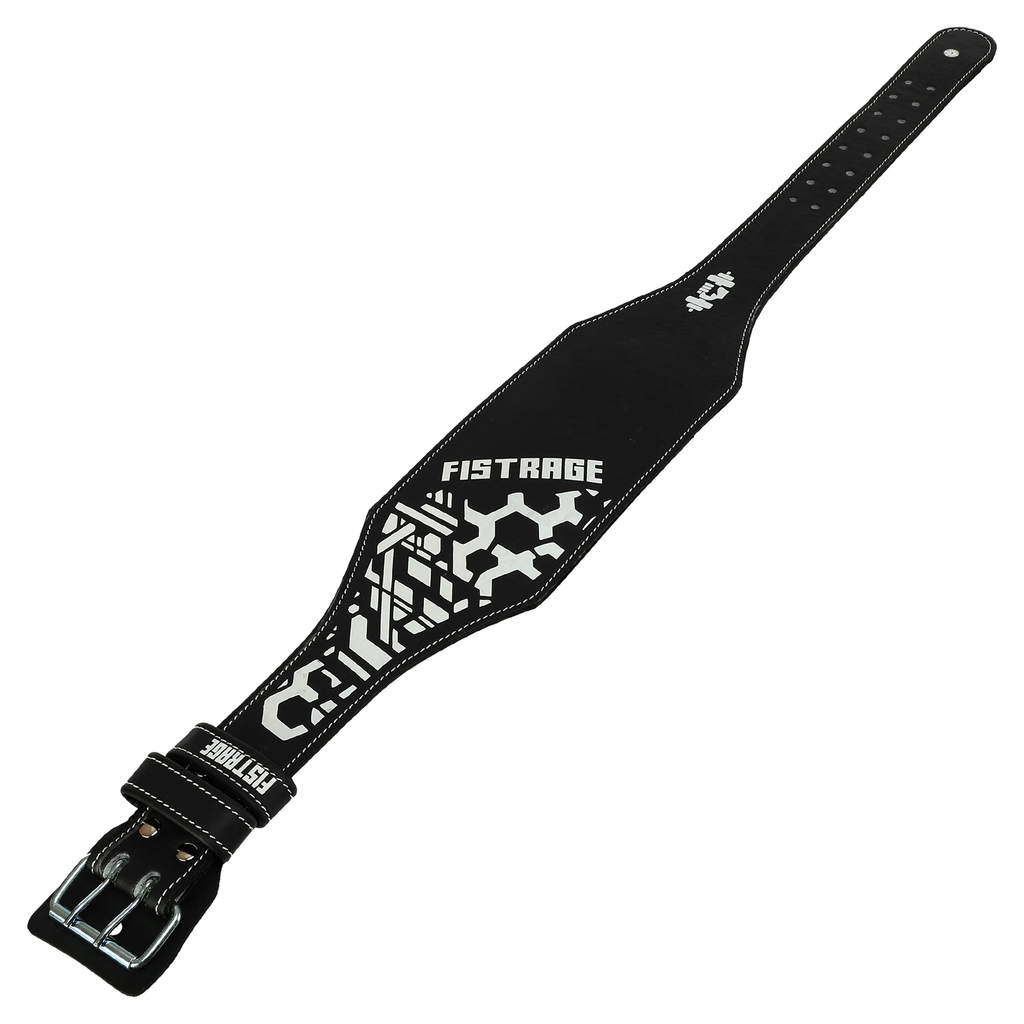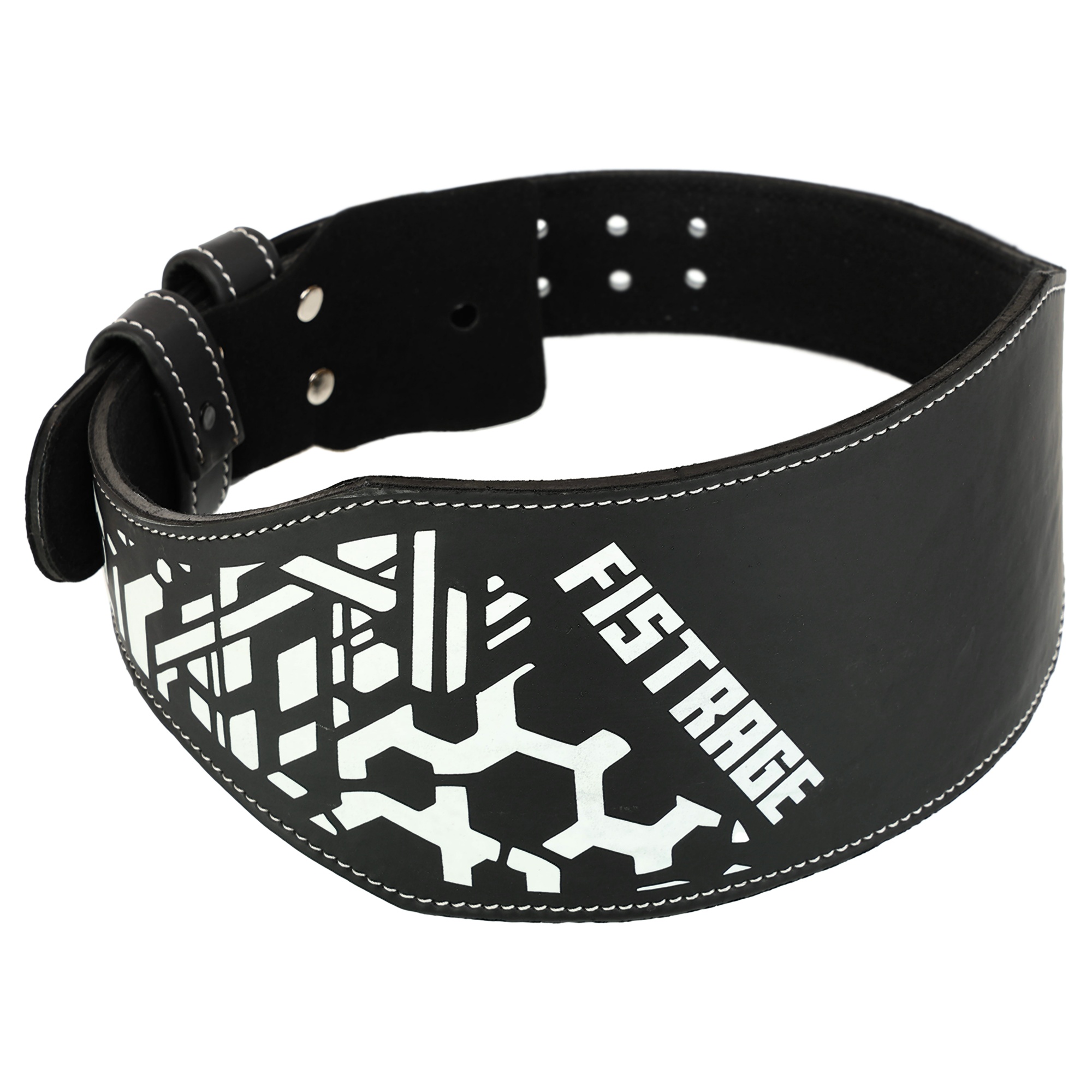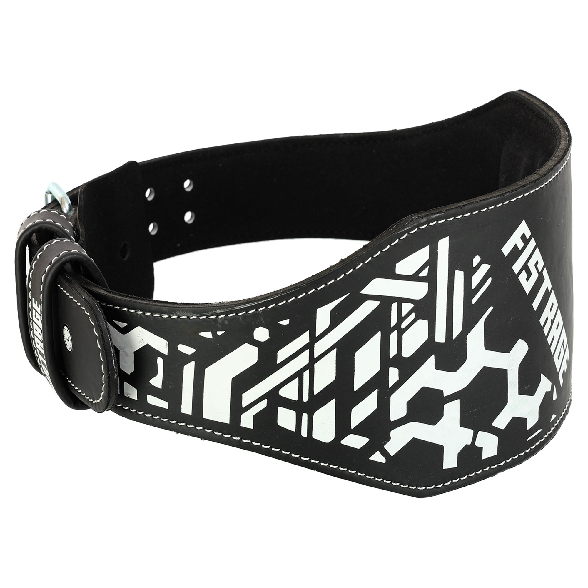 Пояс атлетический кожаный FISTRAGE спинка-15см размер-S-XL черный-белый