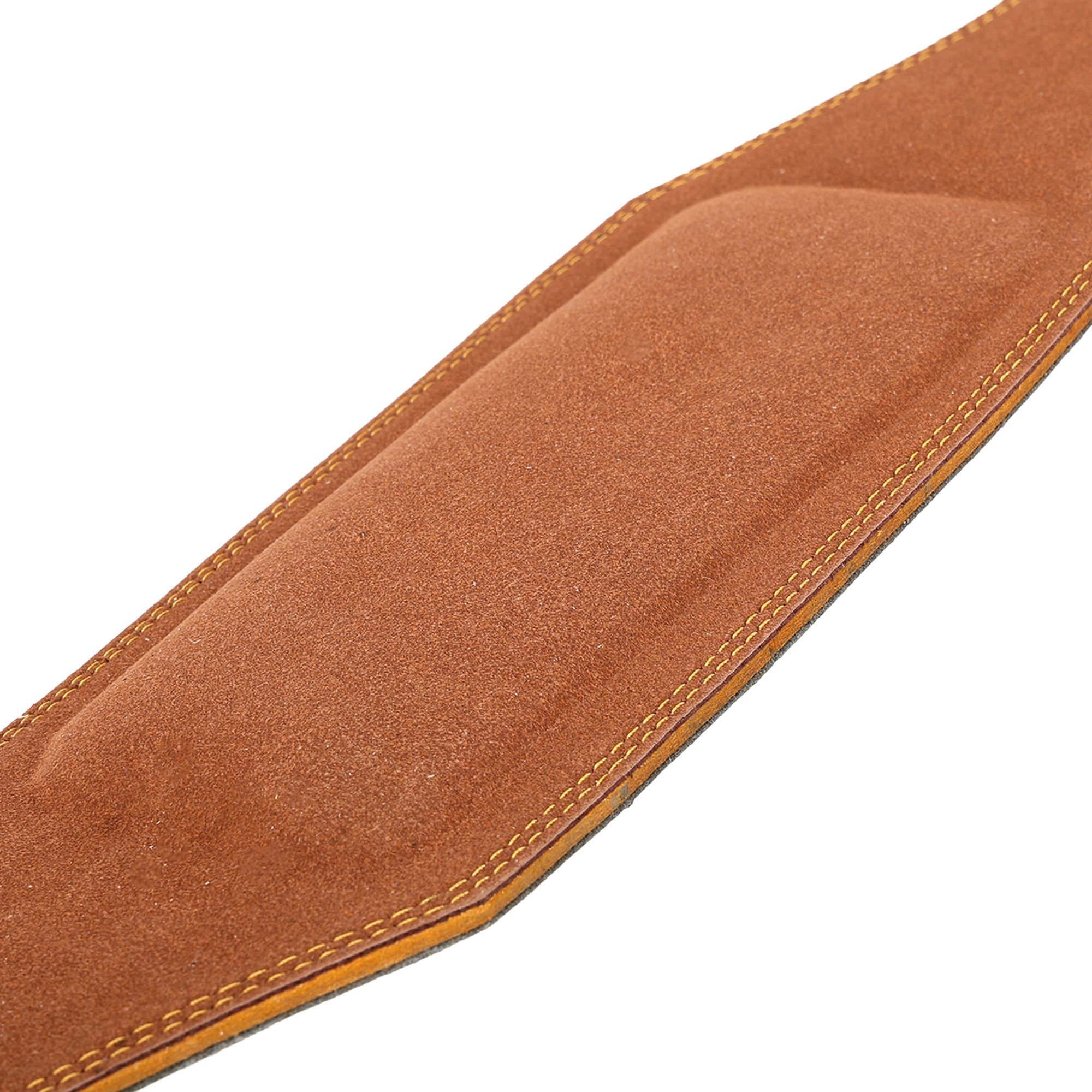 Коричневый кожаный пояс — это классика силового спорта. Ещё в середине XX века тяжелоатлеты использовали кожаные ремни для поддержки корпуса, и с тех пор этот материал остаётся эталоном надёжности.
