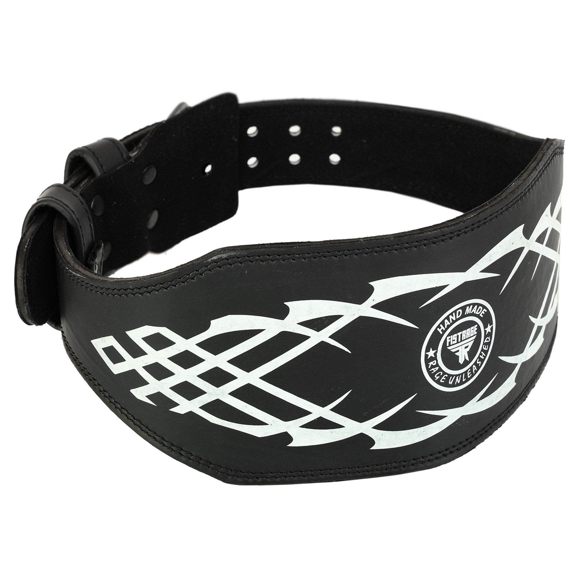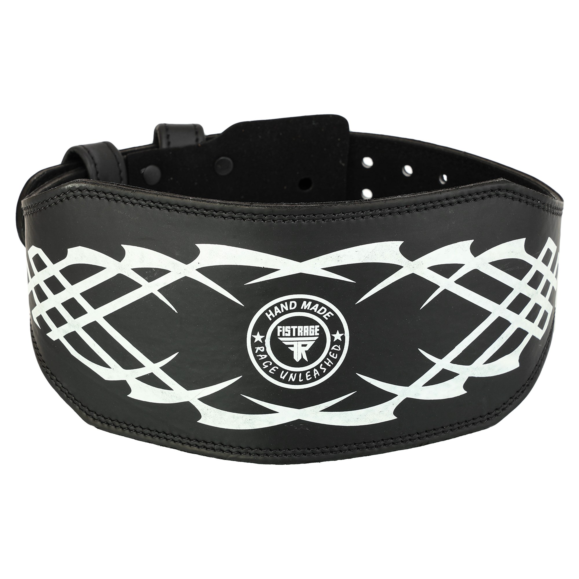 Дизайн также играет важную роль: контрастный черно-белый узор придает модели уникальный и стильный вид. Центральный фирменный логотип FISTRAGE подчеркивает профессиональный уровень экипировки. Анатомическая форма с расширенной задней частью идеально повторяет контуры тела, обеспечивая максимальный комфорт и поддержку во время выполнения приседаний, становой тяги и других базовых упражнений.
