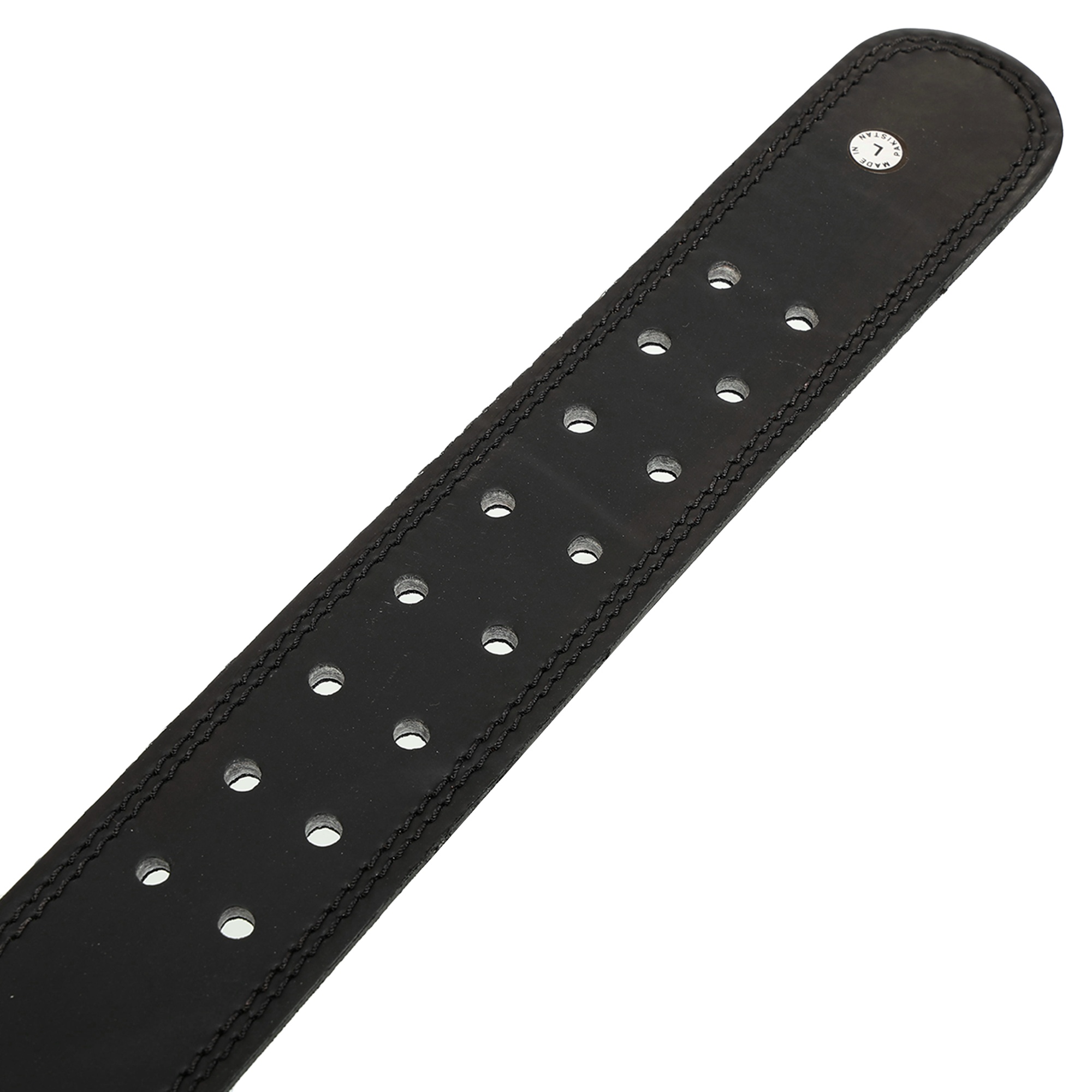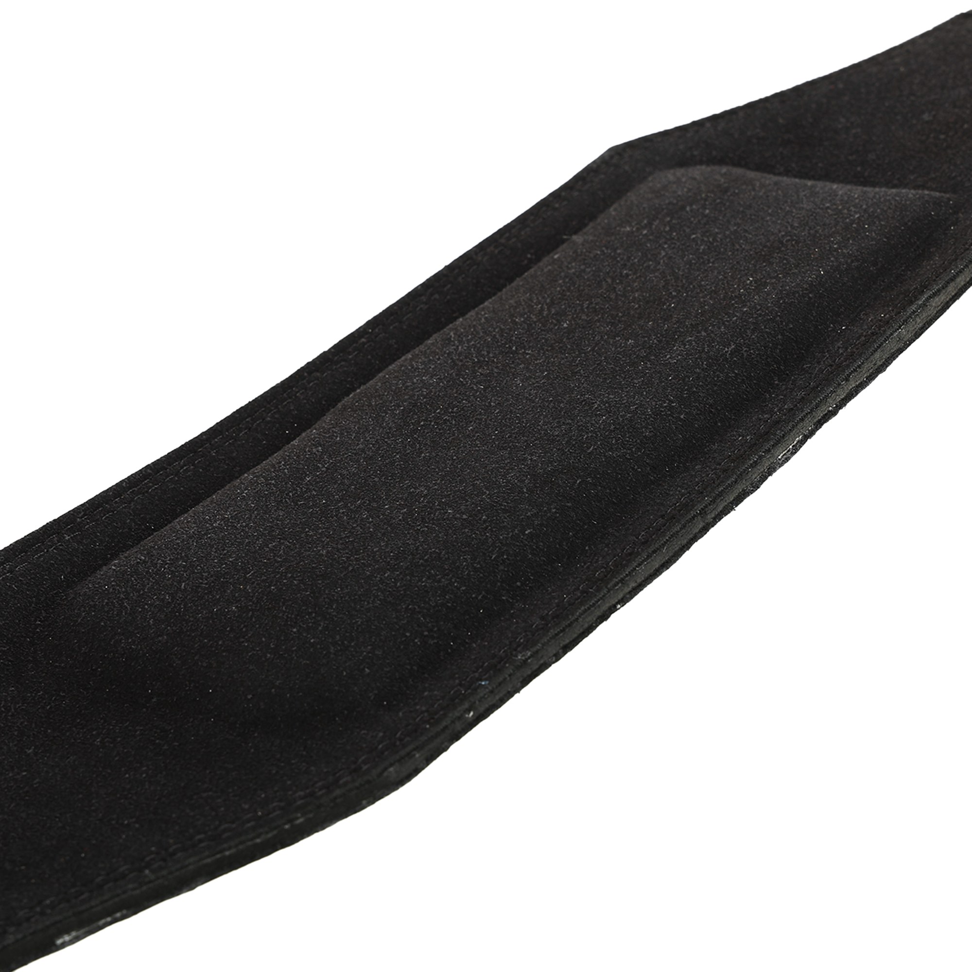 За фиксацию отвечает классическая стальная пряжка, которая обеспечивает надежное удержание пояса на месте даже при самых интенсивных тренировках. Армированные швы добавляют долговечности, выдерживая огромные нагрузки без деформации.