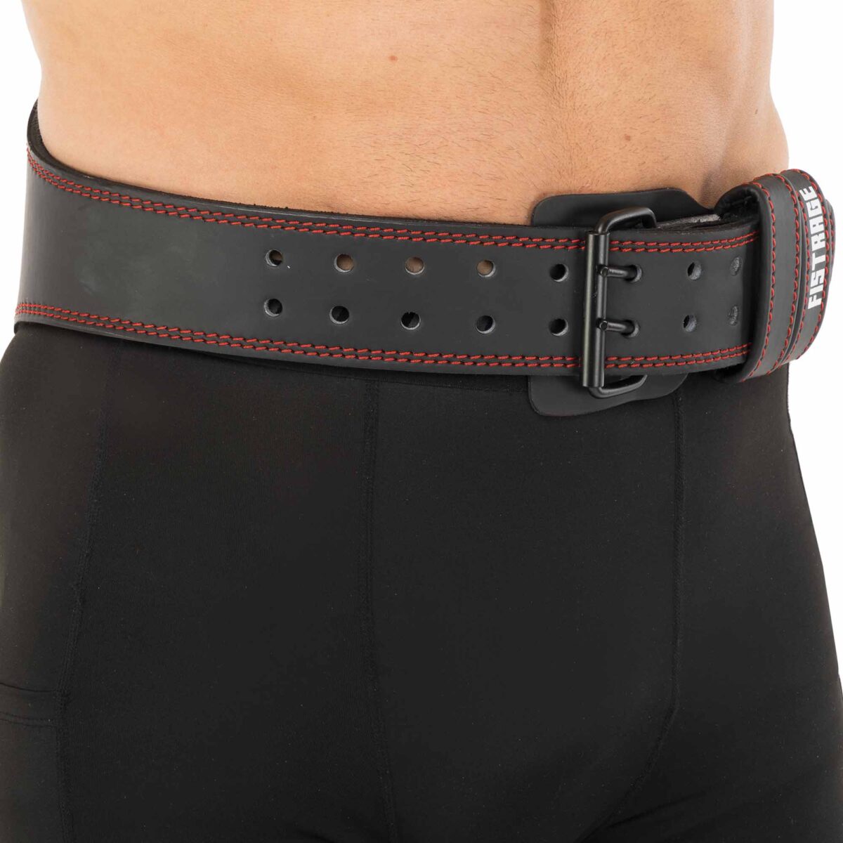Дизайн модели заслуживает особого внимания: контрастная красная прострочка не только усиливает швы, но и придаёт поясу стильный премиальный вид. А агрессивный красный логотип FISTRAGE подчёркивает силу, мотивацию и настрой на победу.