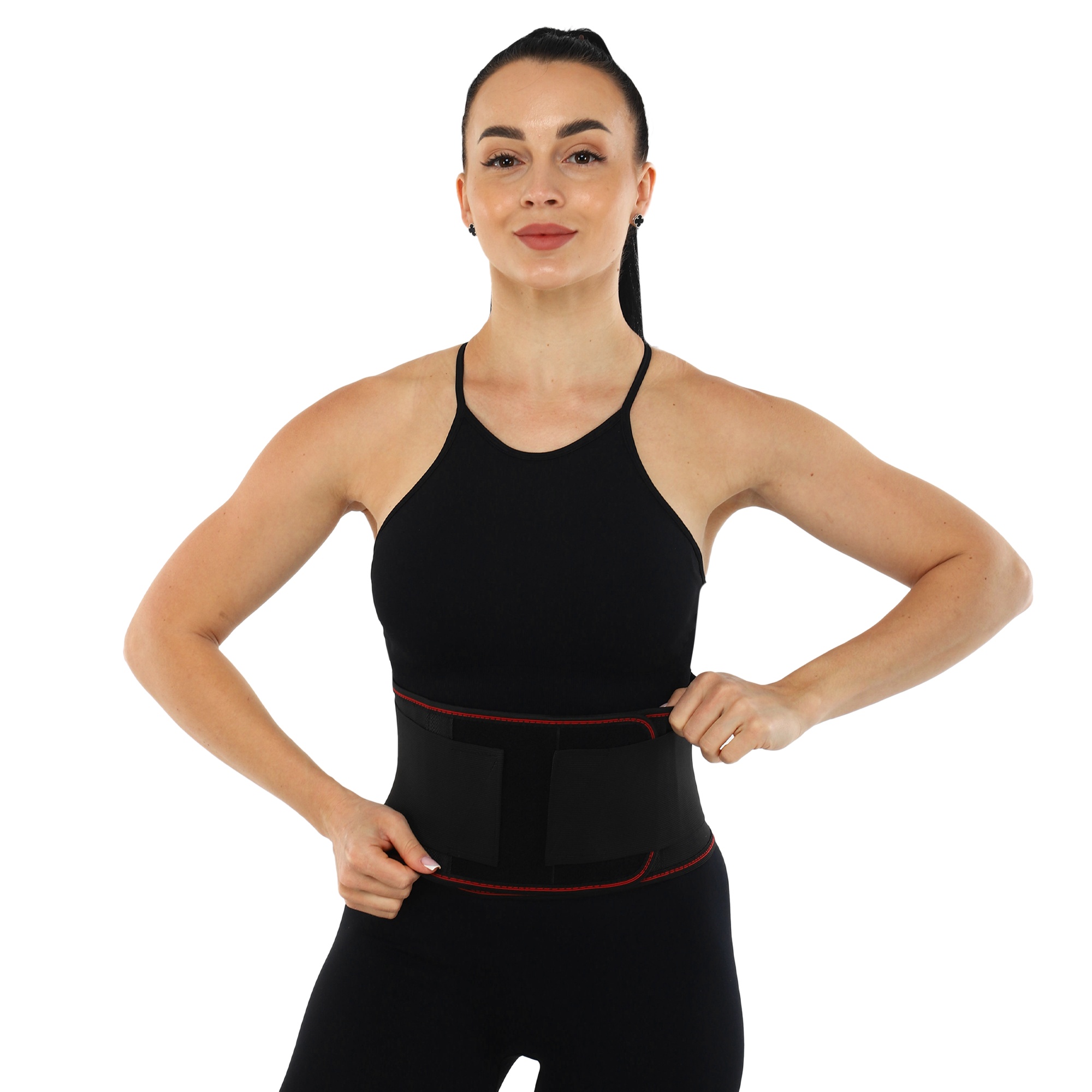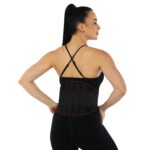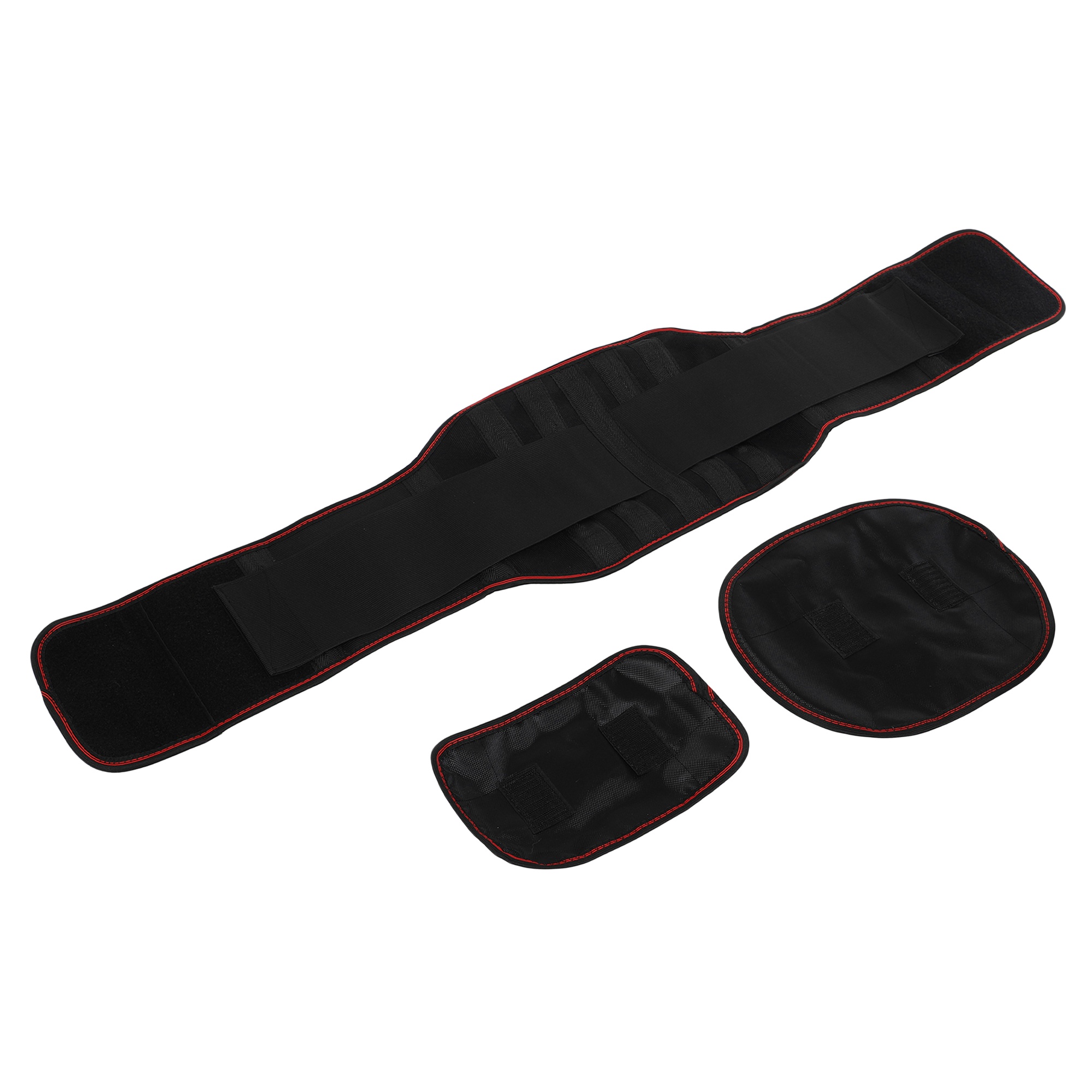 Пояс корсетный для поясницы имеет 5 встроенных ребер жесткости и магнитные турмалиновые накладки на поясницу и живот. На теле фиксируется с помощью широкой липучки, степень компрессии можно регулировать с помощью широкого эластичного ремня.
