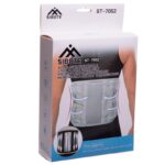 Ортопедический пояс для поддержания поясничного отдела позвоночника, укомплектованный всем необходимым. Перфорация на поясе обеспечивает комфортное использование в любое время года. Пояс комплектуется специальными вкладышами, которые располагаются на спине. Мягкие тканевые вкладыши можно менять по мере необходимости для поддержания гигиены. Спереди пояс фиксируется с помощью ремней на липучках. Широкие ремни обеспечивают надёжную фиксацию и точную регулировку по обхвату. В области спины расположены металлические рёбра жёсткости, которые обеспечивают надёжную фиксацию поясничного отдела. Пояс отлично поддерживает не только позвоночник, но и органы брюшной полости.