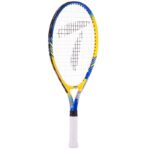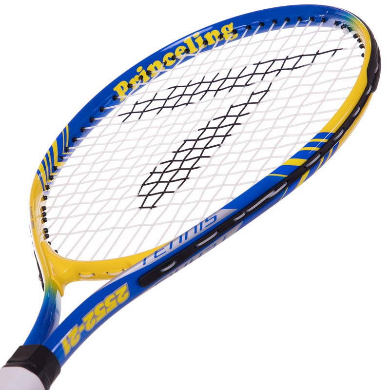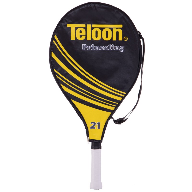 Ракетка для большого тенниса TELOON Princeling (Old Style) — идеальный вариант для получения первого опыта в игре. Легкая и удобная конструкция из алюминия позволяет ребенку играть продолжительное время без чувства усталости в руке. С алюминиевой ракеткой проще освоить технику нанесения удара, значительно ниже риск получить травму запястья или плеча. Длина ракетки соответствует росту ребенка 110-122 см, при опущенной руке снаряд не должен доставать до пола. Ручка и вилка ракетки несколько короче чем у взрослых моделей, основную часть размера занимает голова типа midsize. Струнная формула 16х17 обеспечивает средний потенциал вращения и мощности удара. Ручка имеет базовую обмотку, препятствующую проскальзыванию. В комплекте удобный чехол на молнии, который защищает ракетку от механических повреждений, пыли и влаги.