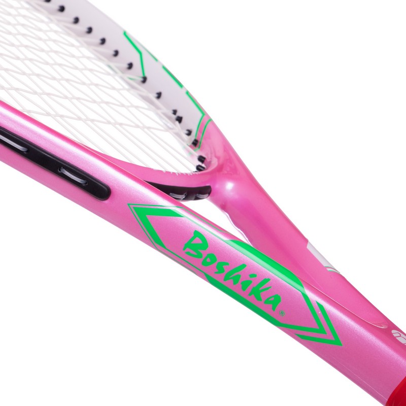 Ракетка для игры в большой теннис BOSHIKA EZONE имеет открытую струнную формулу 16х19. Ракетка предназначена для любителей и начинающих. Качественный инвентарь начального уровня изготовлен из поликарбона. Материал легкий и прочный. Ракетка небольшого веса позволяет тренироваться и играть дольше, не переутомляя руку. Также такой снаряд более маневренный.