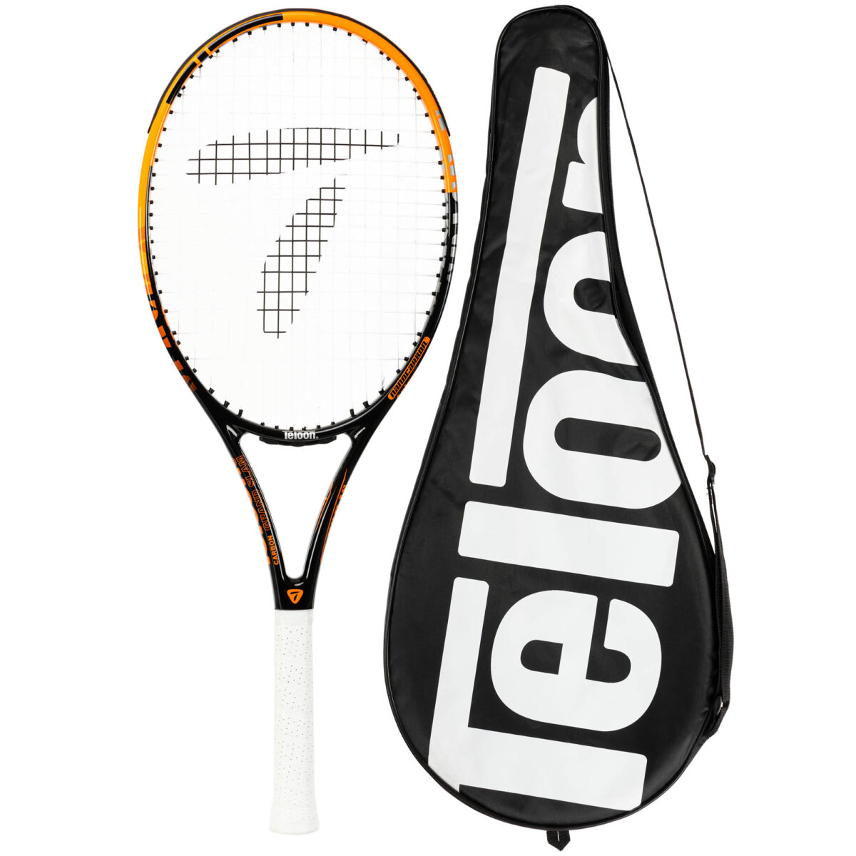 Оригинальная ракетка от популярного бренда в мире большого тенниса TELOON изготовлена из алюминия. Её могут использовать любители, которые вышли на продвинутый уровень игры и умеют обращаться со спортивным снарядом. Благодаря использованию высококачественной ракетки с длиной 685 мм и мужчины, и женщины смогут существенно улучшить свои навыки. Заводское натяжение струн позволяет использовать ракетку сразу после покупки. Производитель использовал открытую струнную формулу 16×19.