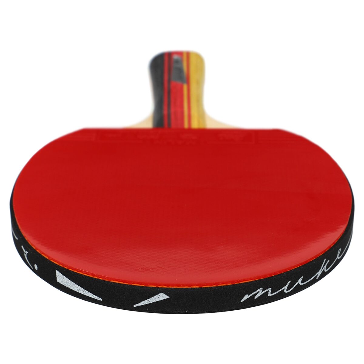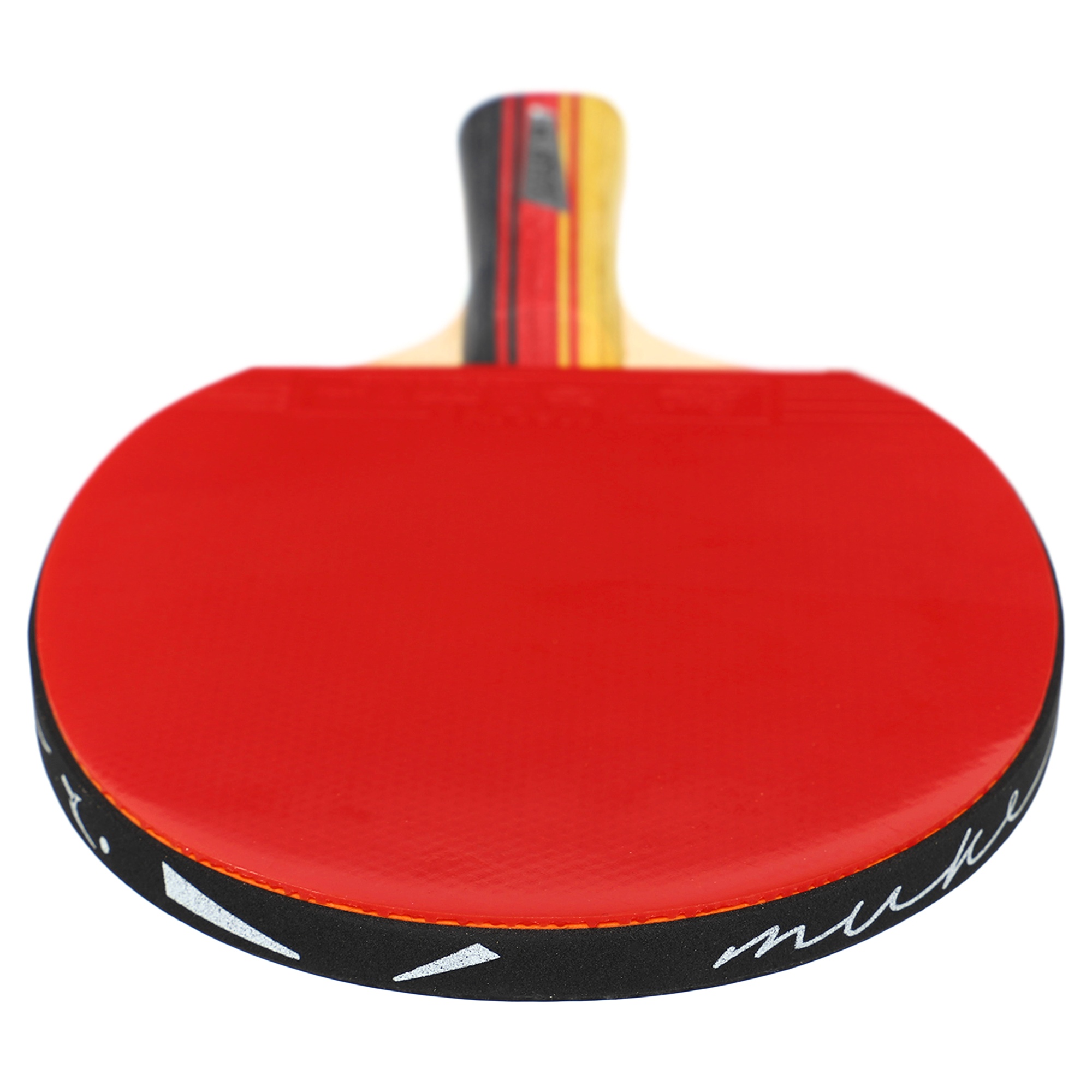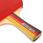 Основание ракетки выполнено из нескольких слоев качественной древесины, что обеспечивают оптимальную жесткость для лучшего отскока. Ручка конической формы хорошо ложится в руку, не вызывает усталости кисти. Резиновые накладки обеспечивают сцепление с мячом, позволяют контролировать подачу и прием, а также управлять вращением мяча. Между основанием и накладками расположена мягкая губка, повышающая показатели скорости ракетки.