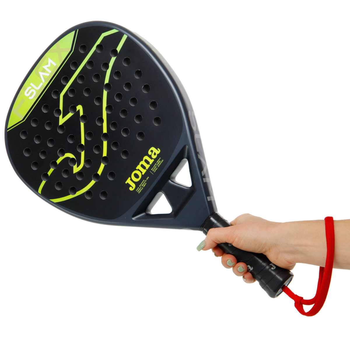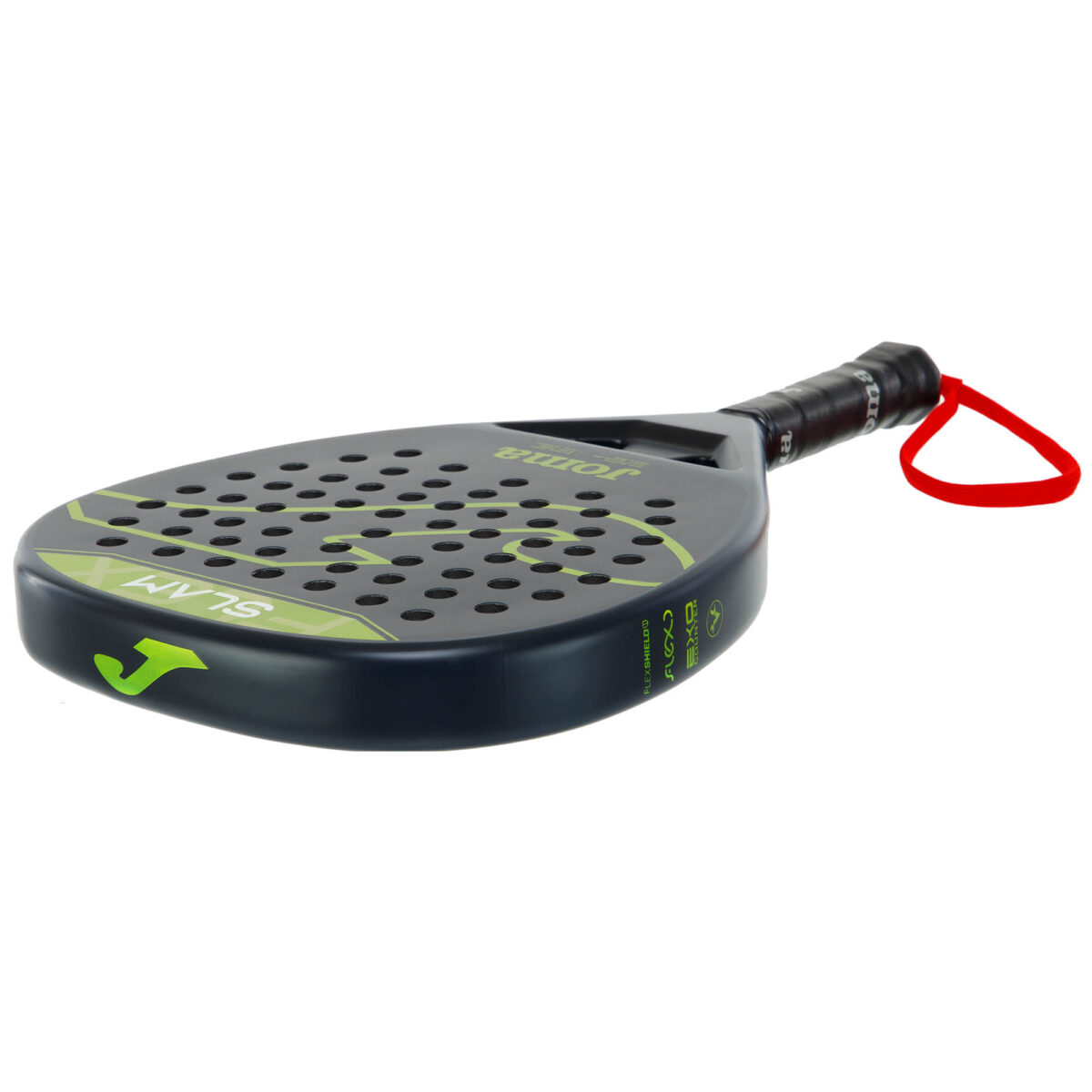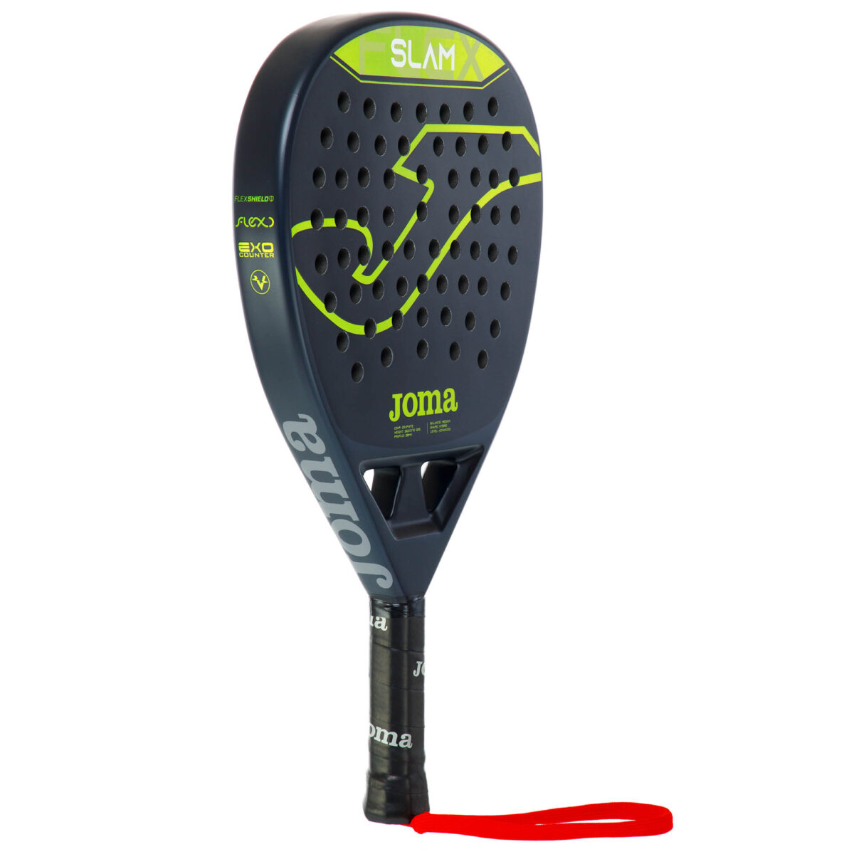 Ракетка Joma SLAM — это снаряд высокого качества для профессиональной и любительской игры в падел теннис. Материалы для падел-ракетки были разработаны в инновационном центре Joma Padel с учетом всех требований к этому спортивному снаряду. Прочная рама, изготовленная по технологии Exo Counter снижает общую вибрацию при сильных ударах мячом. В качестве наполнения использован пенистый материал высокой плотности из Fexo Black EVA. Он обеспечивает средне-жесткое касание и мощную отдачу мяча.