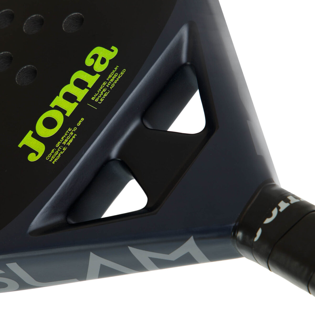 Joma SLAM — это ракетка высокого уровня, изготовленная с использованием инновационных технологий производства и материалов. Она является универсальным снарядом, который можно использовать как для обучения начинающих, так и опытным игрокам. Технология изготовления ядра делает ракетку более ориентированной на мощность удара и сильный отскок, что позволяет проводить динамическую игру на высокой скорости.