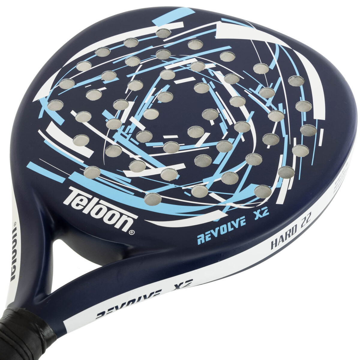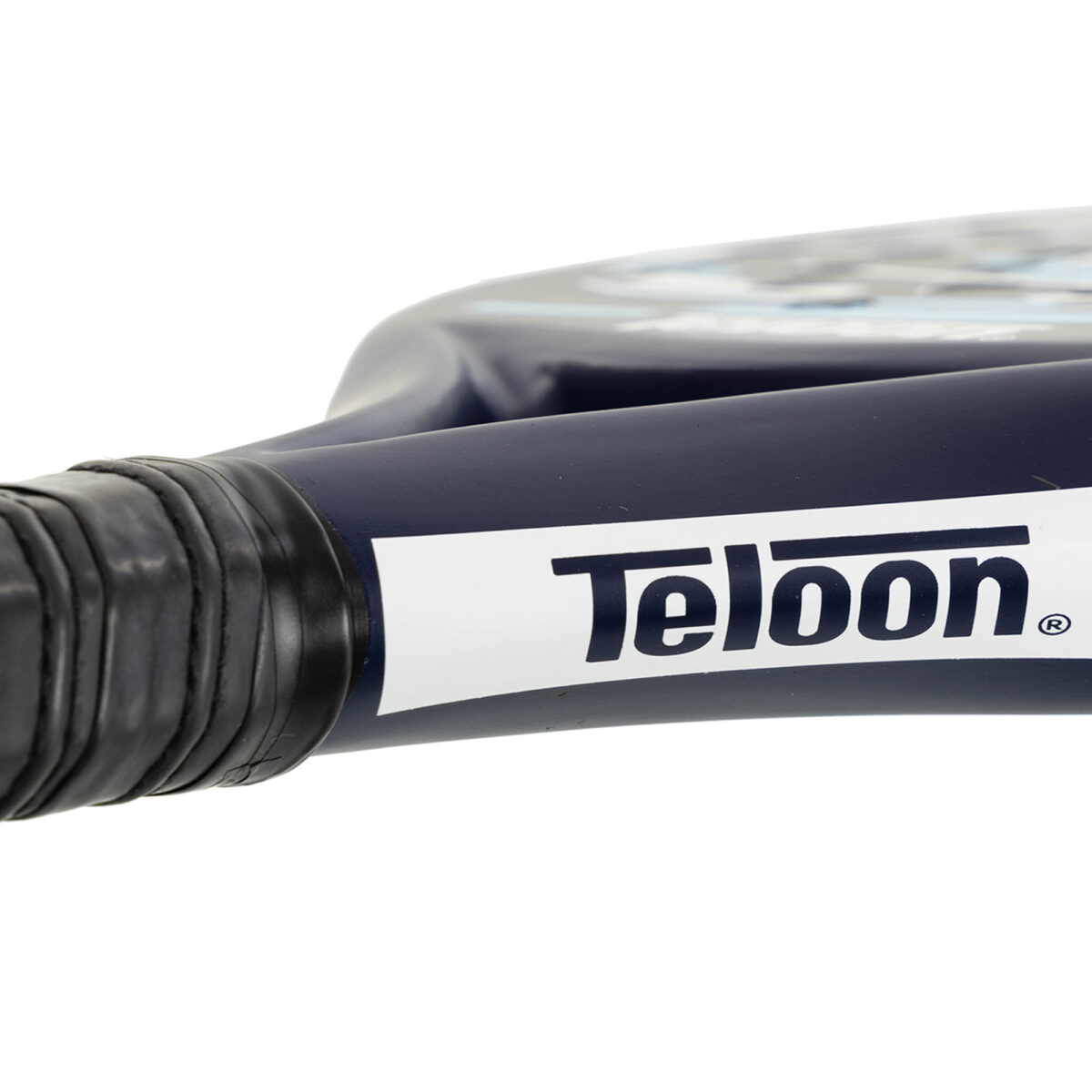 TELOON REVOLVE — профессиональная ракетка для игры в падел теннис. Комплект состоит из одной ракетки и специального чехла для их хранения. Рама изготовлена из стопроцентного карбона, что является привычным для высококачественных ракеток. Ядро изготовлено из EVA материала повышенной плотности. Такая ракетка идеально подойдёт для скоростных матчей, однако использовать её в холодное время года нежелательно. Ракетки с таким сердечником считаются более долговечными, чем полиэтиленовые.