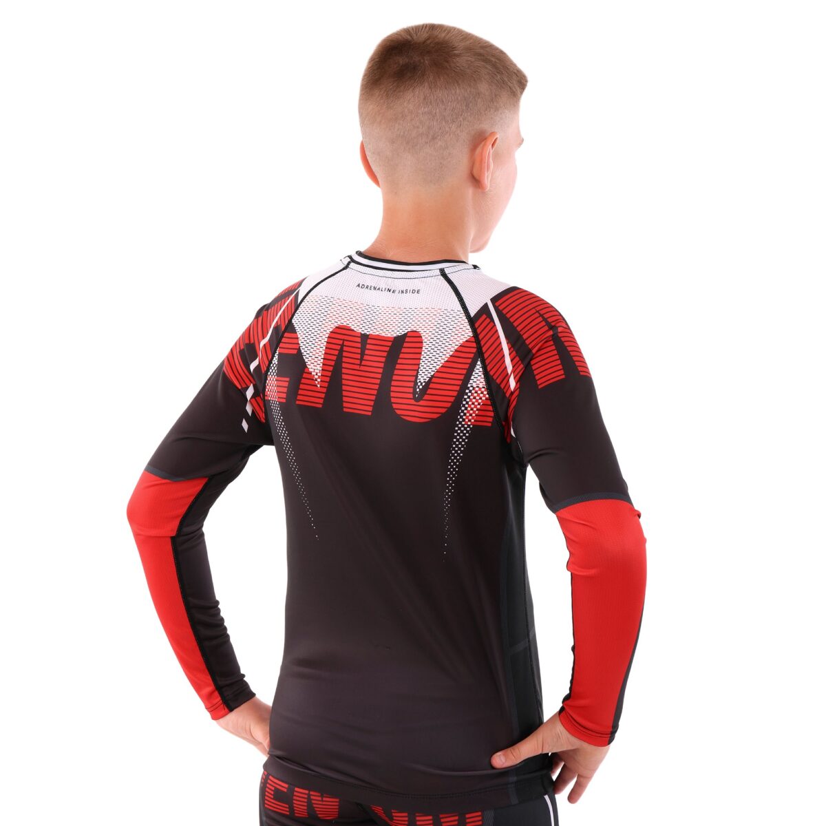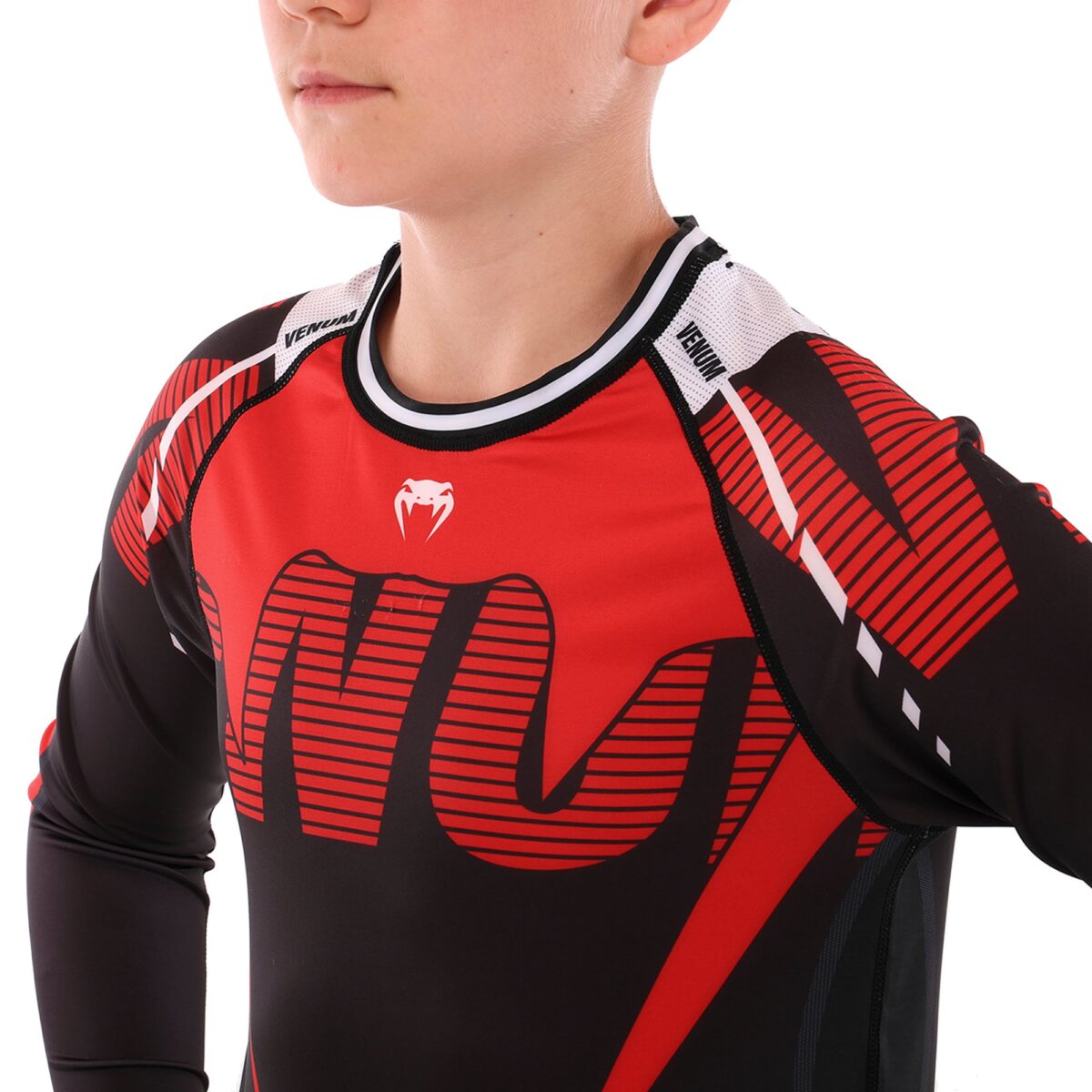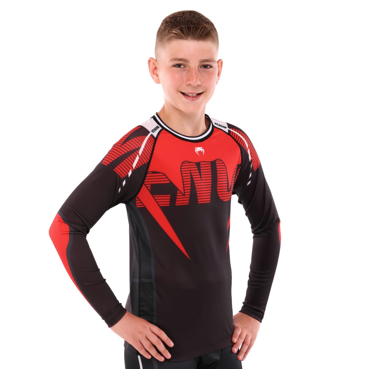 Рашгард VENUM с длинным рукавом создан специально для детей, что подчеркивается его удобной посадкой и продуманным кроем. Изготовленный из комбинации полиэстера и спандекса, это сочетание отличается высокой эластичностью и прочностью, что особенно важно для активных тренировок. Полиэстер обеспечивает эффективный отвод влаги, помогая сохранить кожу сухой даже во время самых интенсивных занятий, в то время как спандекс добавляет ткани эластичности, обеспечивая полную свободу движений.