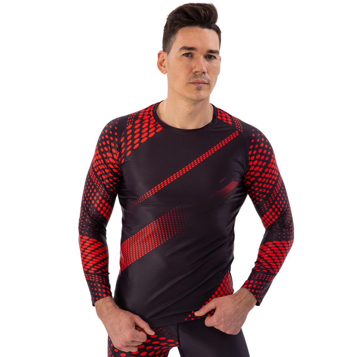 Рашгард лонгслив мужской Domino S-2XL черный-красный