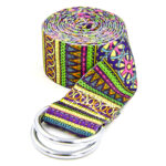 Ремень для йоги с кольцами 183×3,8см зеленый-желтый