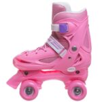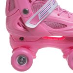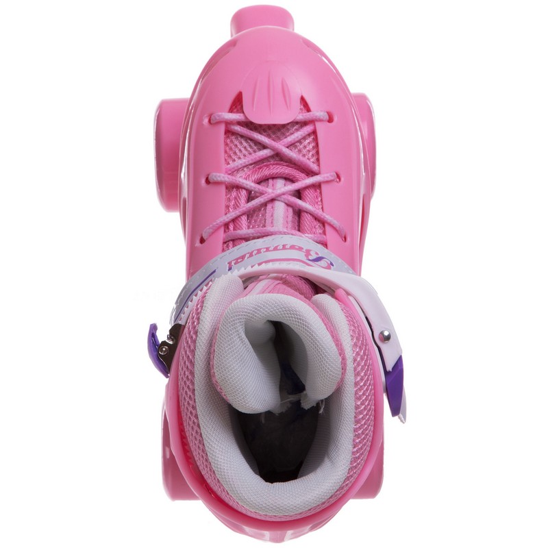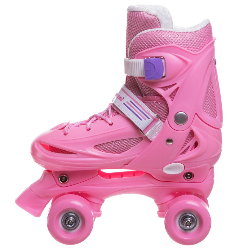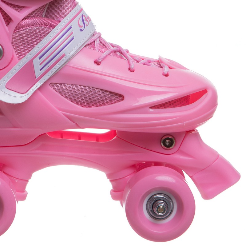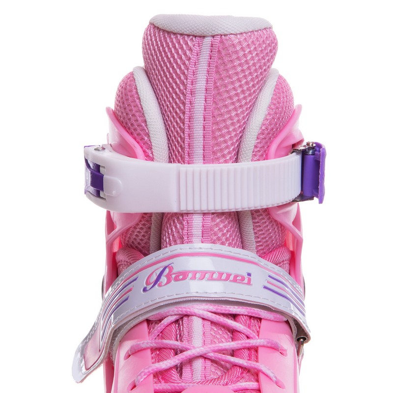 Раздвижные детские ролики Квады Banwei – практичный вариант, который позволит ребенку быстро и безопасно освоить основы катания и прослужит не один год. Полужесткий ботинок из ударопрочного пластика и мягкого, дышащего полиэстера регулируется по размеру. Изделие с комфортной посадкой не ограничивает подвижность роллера, надежно фиксирует голеностопный сустав и поддерживает стопу в правильном положении. Фиксация ботинка осуществляется с помощью шнурка и пластиковой застежки-бакли.