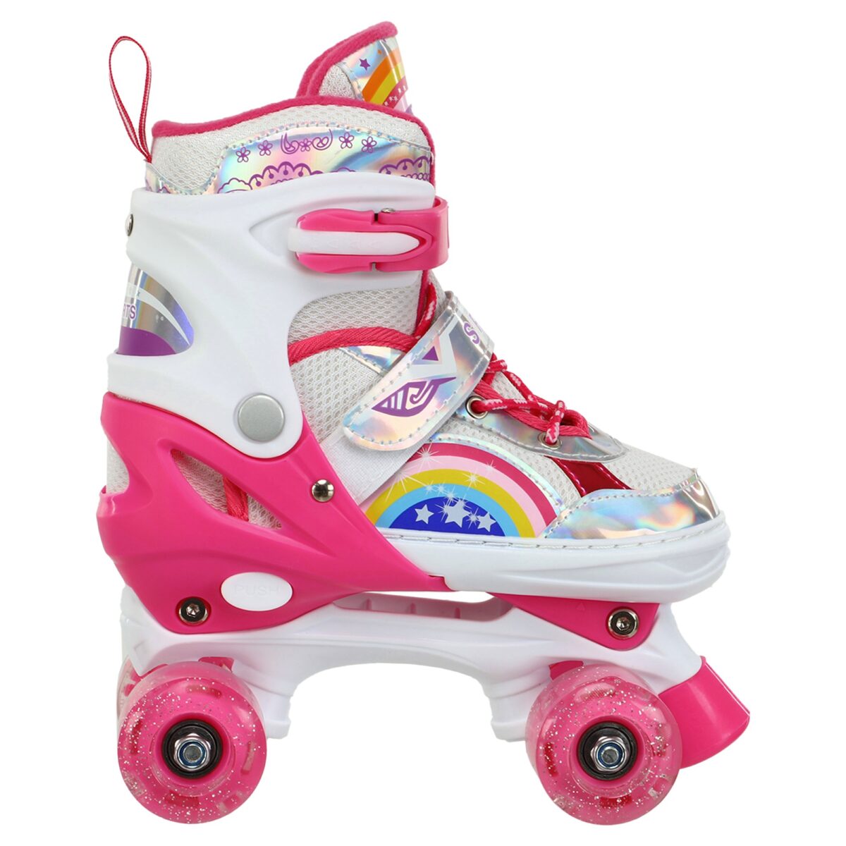 Колеса выполнены из полиуретана (PU) с диаметром 55 мм и жесткостью 82А, что идеально подходит для плавного и стабильного катания. Эти параметры обеспечивают отличное сцепление с поверхностью, что особенно важно для уверенного движения по различным типам покрытий. Светящиеся колеса не только добавляют яркий акцент в дизайн роликов, но и повышают безопасность при катании в условиях недостаточной освещенности.