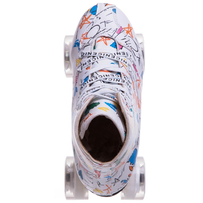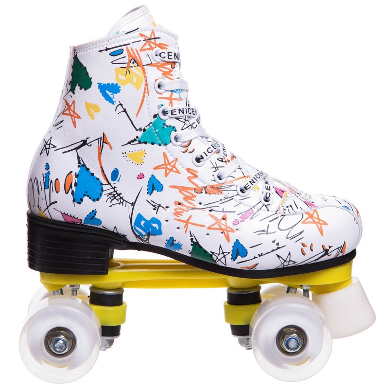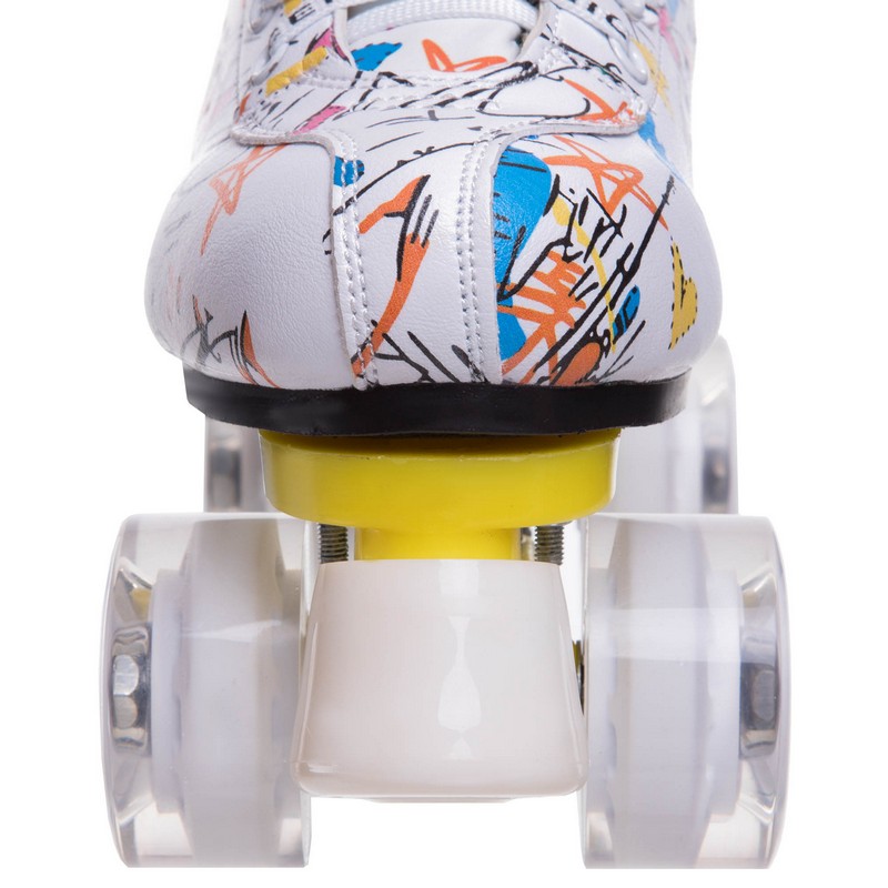 Ботинок из PVC-кожи очень легкий и комфортный в использовании. Он фиксируется с помощью шнуровки и поддерживает лодыжку во время выполнения фигур или прыжков. Ролики имеют яркий, привлекательный дизайн в современном стиле.