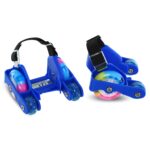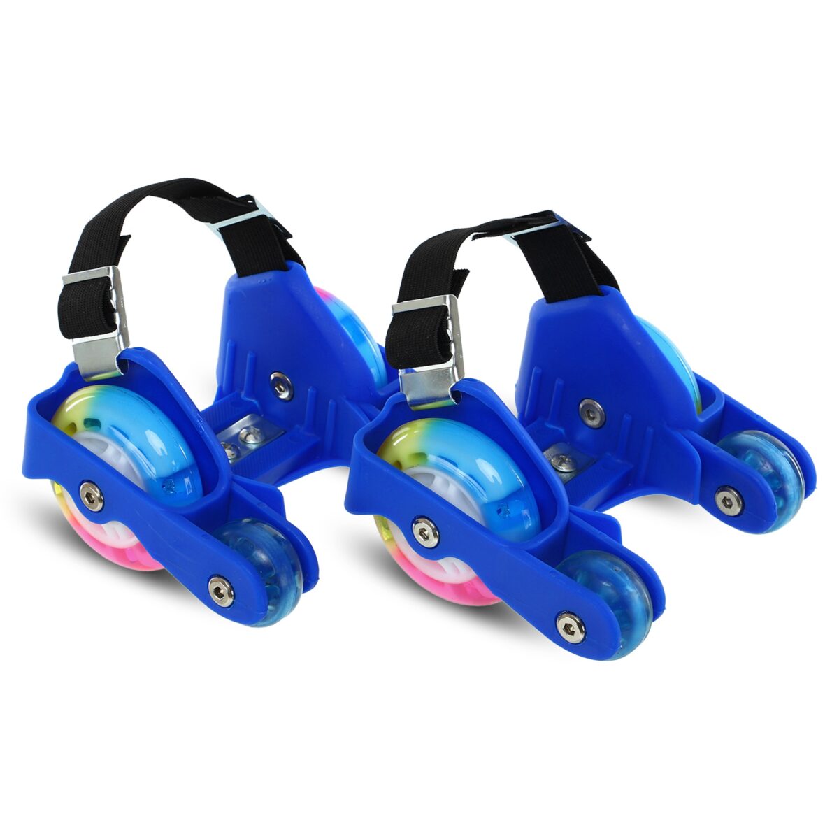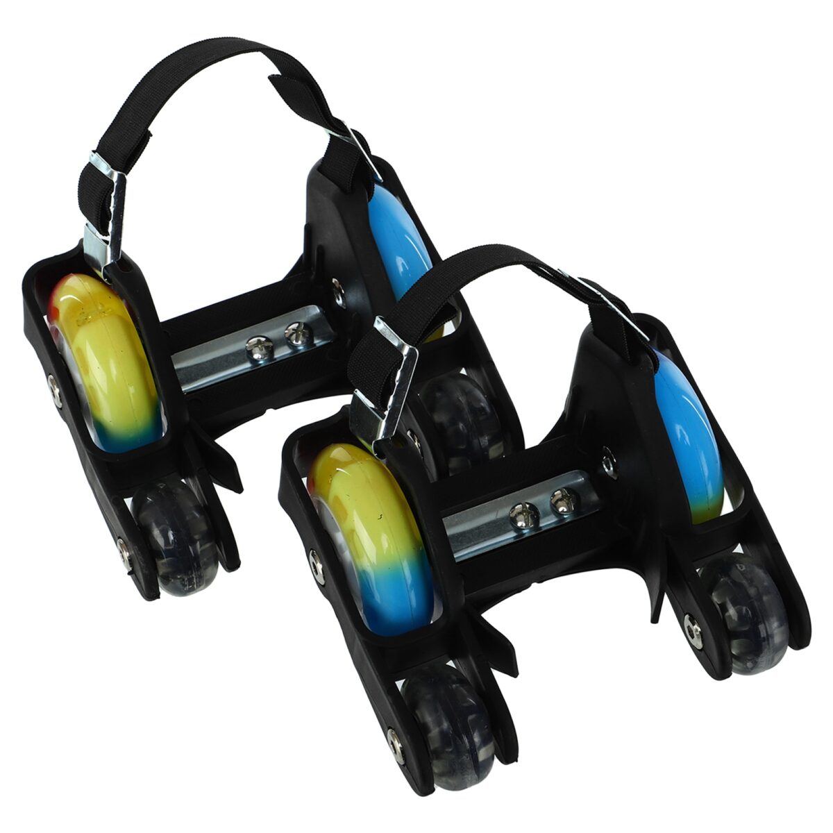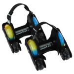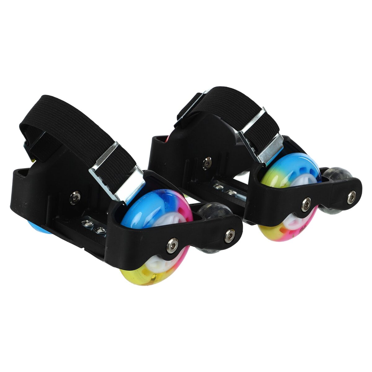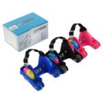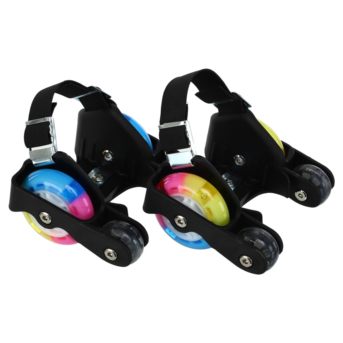 Основная часть конструкции роликов – это раздвижная рама из прочного пластика, которую благодаря специальному механизму можно отрегулировать по ширине практически любого типа обуви с прочной плоской подошвой. На раме закреплены две пары полиуретановых колёс – большие, на которых непосредственно катаются, и поменьше для подстраховки и лучшей устойчивости. Ролики крепятся с помощью регулируемого по длине ремня с металлическим крючком. Такое решение обеспечивает их плотную посадку на ноге. Большие колёса оснащены светодиодной подсветкой, которая переливается разноцветными огнями во время движения.
