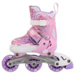 Роликовые коньки выполнены в стильном фиолетово-бирюзовом дизайне. Мягкий внутренний ботинок обеспечивает комфорт при катании, а надежная фиксация ремнями и липучками хорошо удерживает ногу.