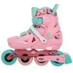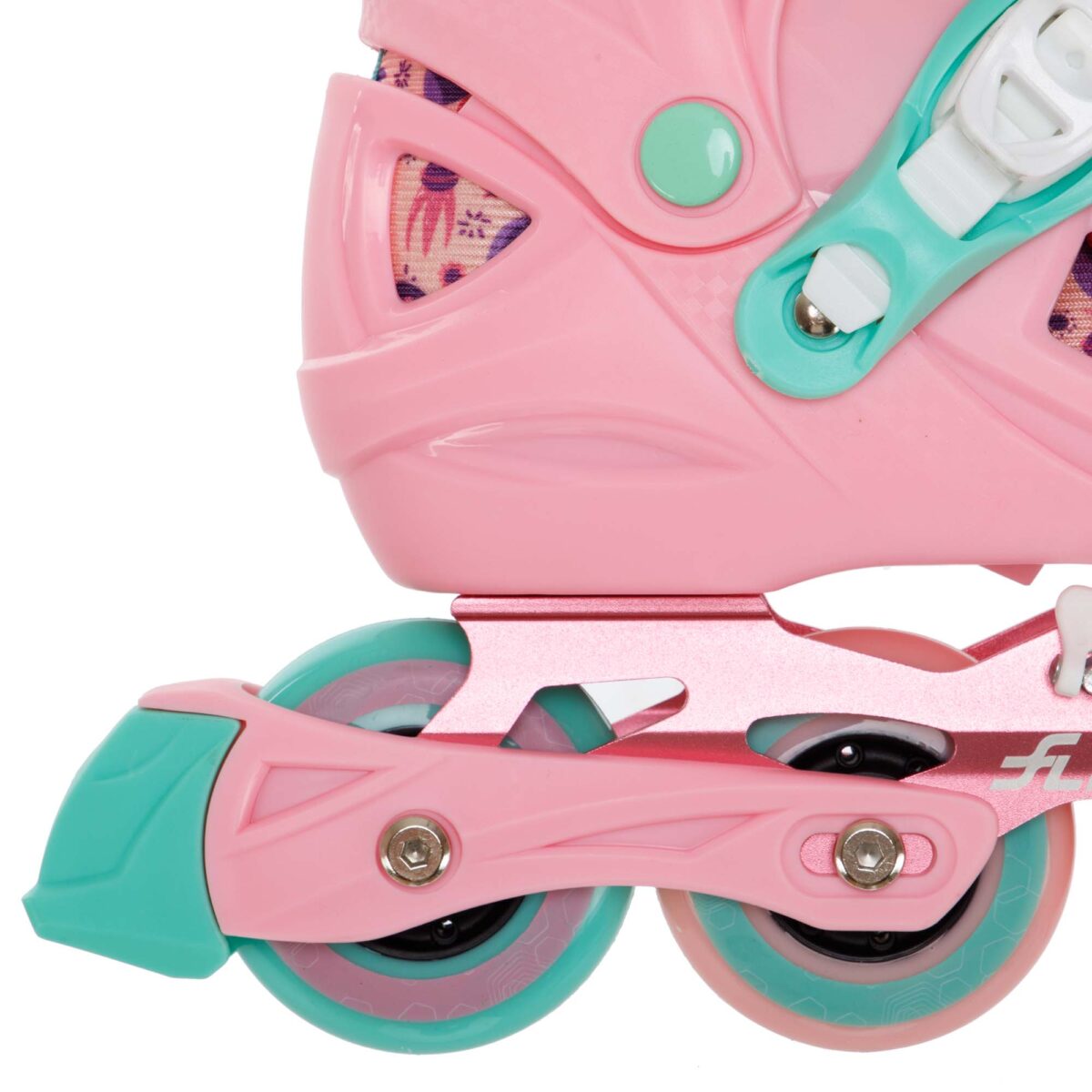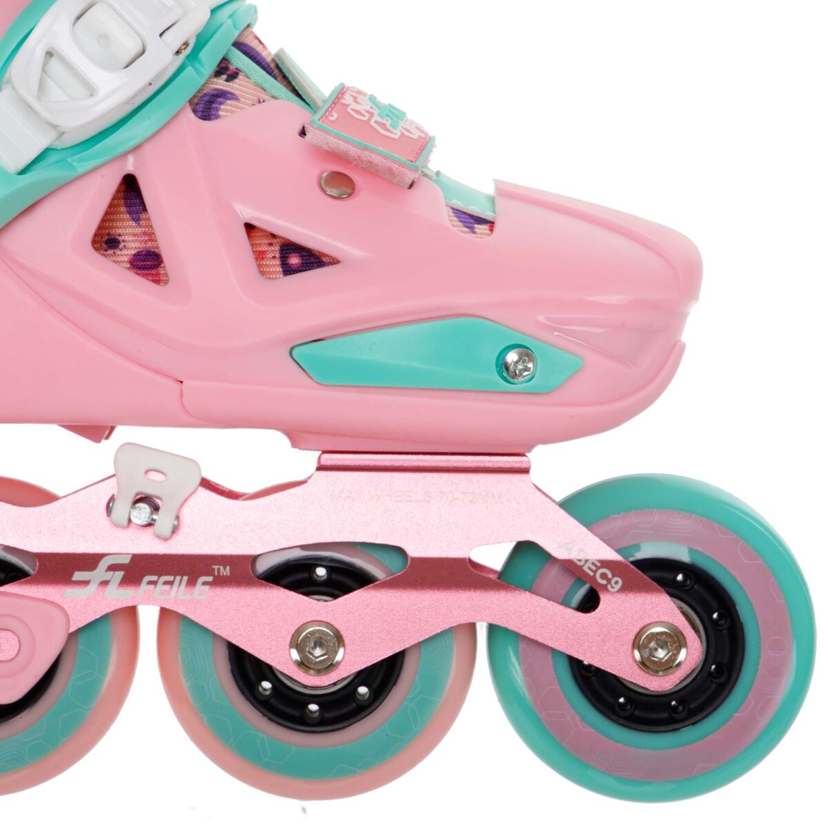 И каф и бут роликов выполнены из прочного и довольно жесткого пластика. Это помогает защитить ноги от травм и надежно зафиксировать их. Лайнеры съемные и выполнены из полиэстера. Материал пропускает воздух, способствуя естественному охлаждению стоп. За фиксацию на ноге отвечают две автоматические застежки и липучка. Шнуровка в этой модели роликов не предусмотрена. Это позволяет ребенку быстро и без помощи взрослых надеть коньки. Хорошо зафиксировать ролики с помощью бакли куда проще, чем с помощью шнурков.
