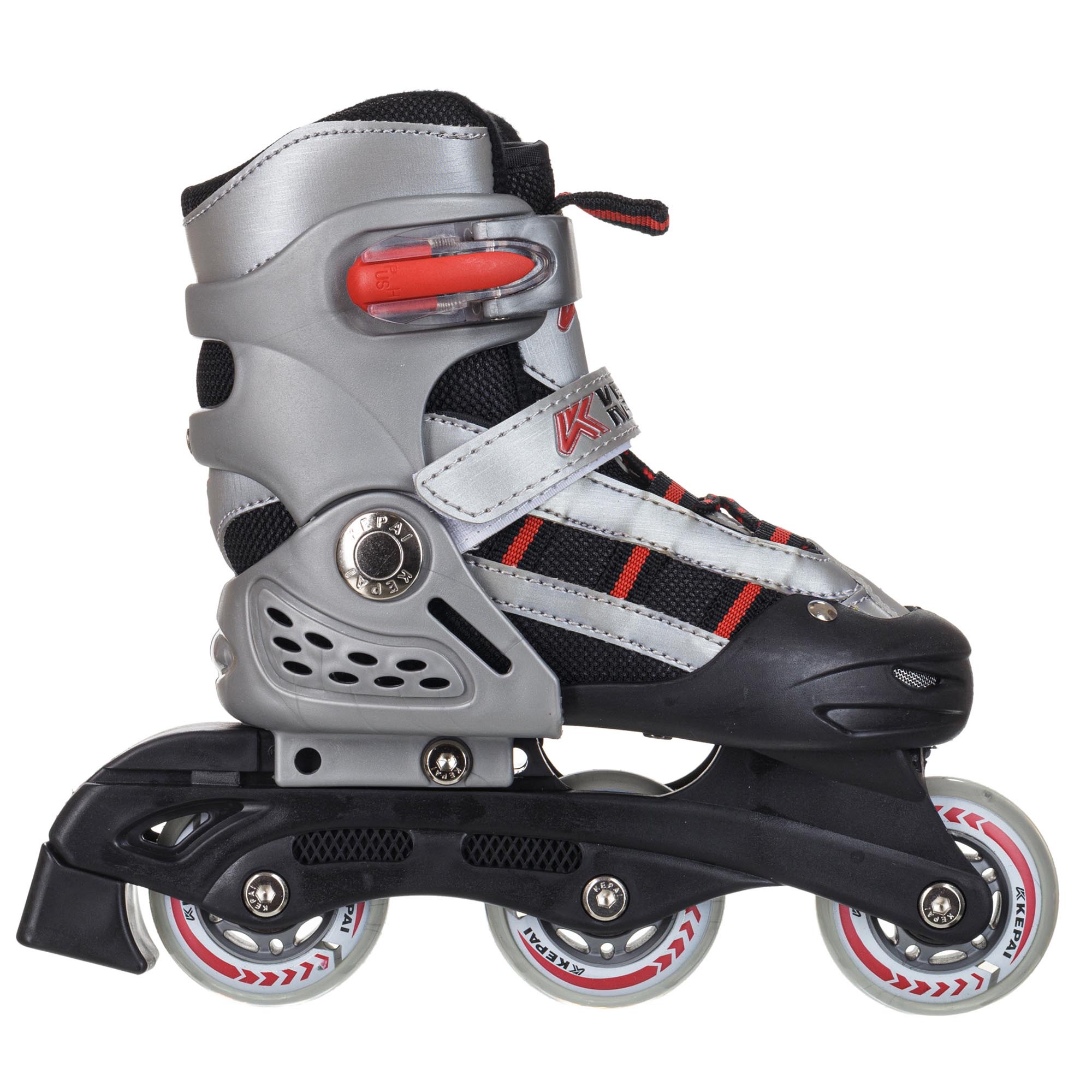 Роликовые коньки KEPAI — это детская модель, представленная в нескольких цветах и размерах. Колеса роликов изготовлены из полиуретана. Установлены подшипники ABEC 5, которые обеспечивают легкое движение с минимальными усилиями. Рама роликовых коньков изготовлена из прочного пластика, который легко выдержит вес ребенка.