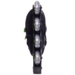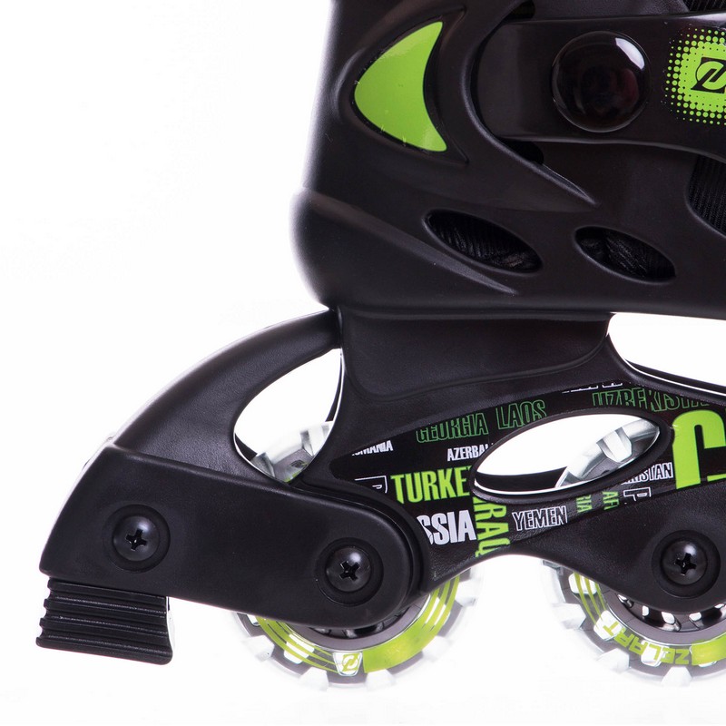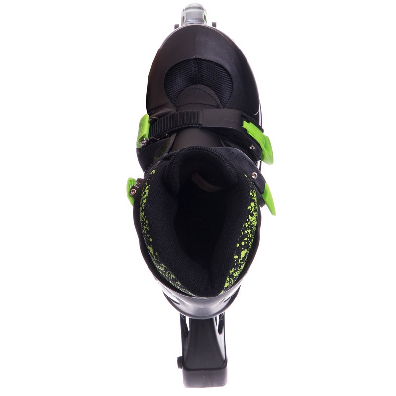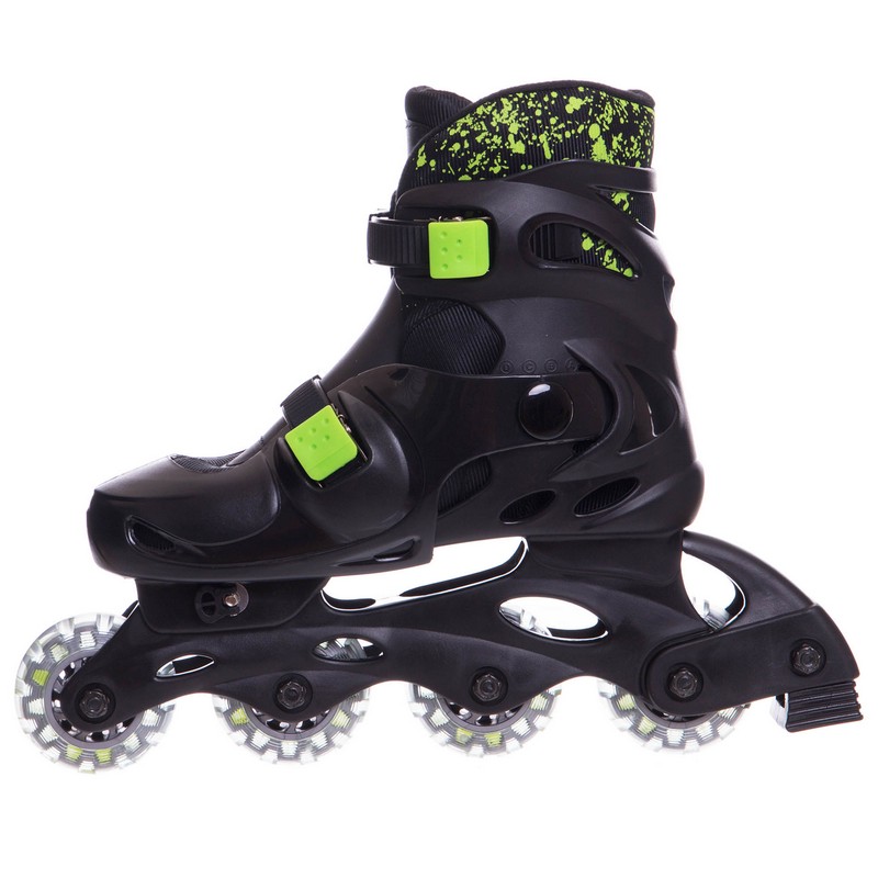 Детские роликовые коньки, продуманные до мелочей. Каф и бут изготовлены из пластика, лайнеры — интегрированные. Пластиковая часть ботинка позволяет защитить ногу от травм в случае падения. Также она обеспечивает оптимальную передачу усилий от ног к роликам во время движения. Для фиксации на ногах в роликах предусмотрены две бакли. Автоматические застежки позволяют максимально точно подогнать ботинок по посадке. Ролики быстро фиксируются на ногах, и так же быстро с них снимаются.