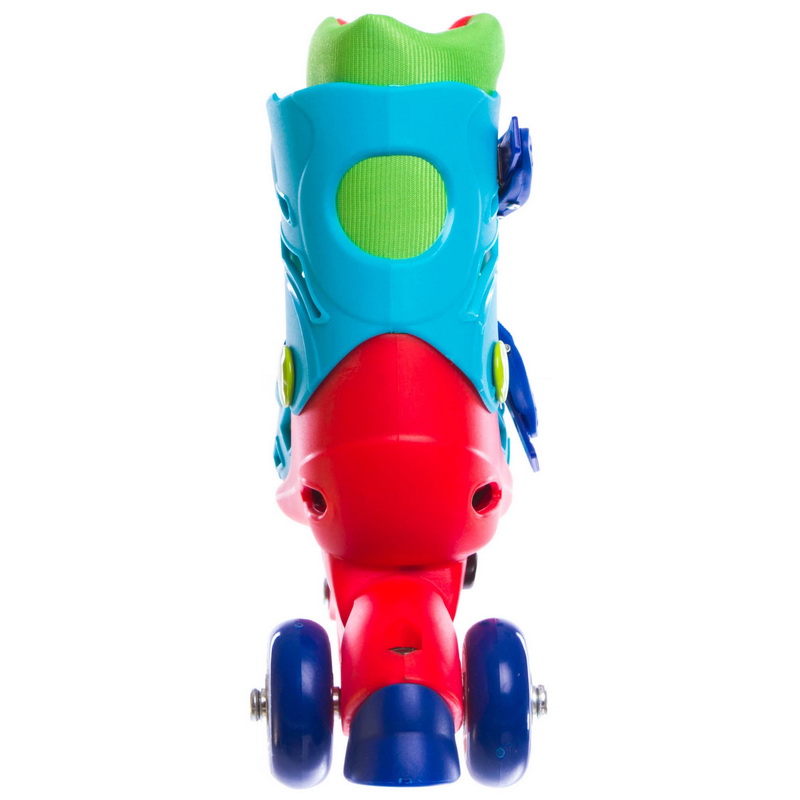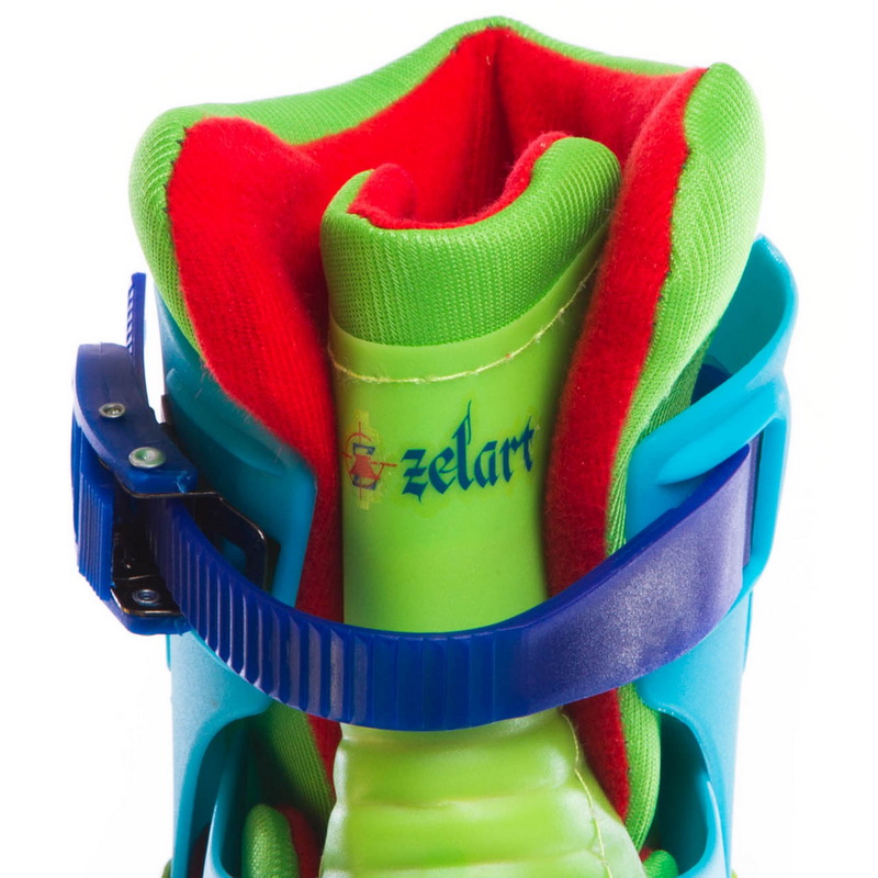 Ботинок и рама изготовлены из прочного пластика. В случае падения ноги ребенка будут защищены от травм. Быстро зафиксировать ролики на ногах позволяет бакля. На каждом ботинке предусмотрено по две застежки.