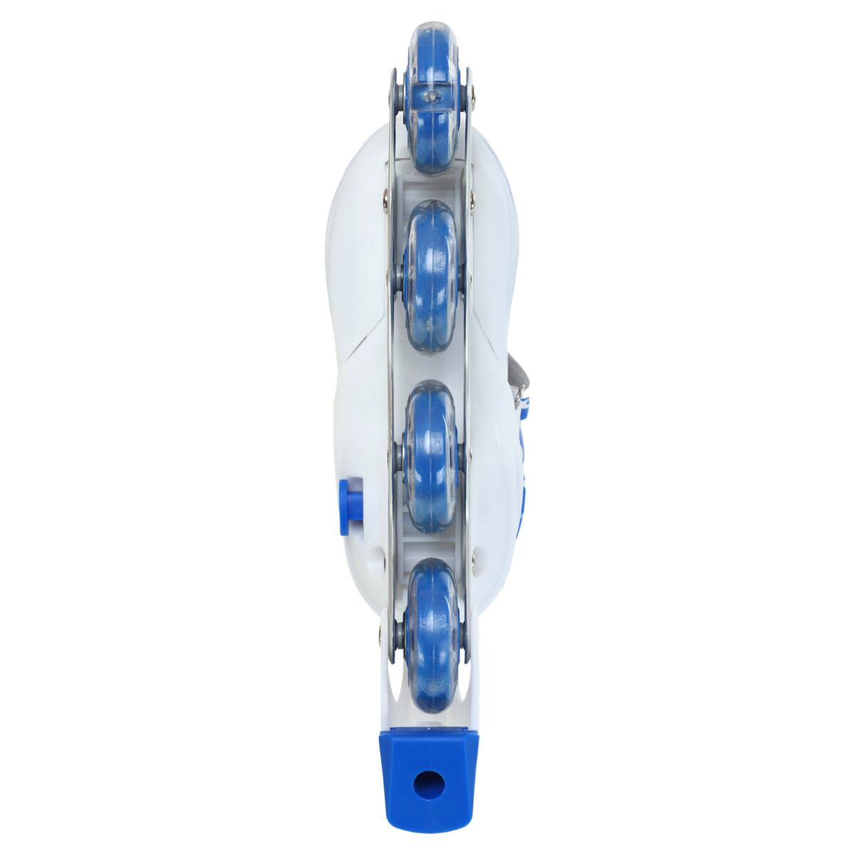 Стильные и яркие ролики могут использоваться мужчинами и женщинами разного возраста для активного отдыха в городе и тренировок на роллердроме. Расположенные в один ряд колеса повышают маневренность роликов, жесткий и прочный материал колес отлично выдерживает постоянные нагрузки и трение о различные поверхности. Светящийся элемент в колесах позволяет роллеру выглядеть стильно и оставаться заметным в условиях плохого освещения.