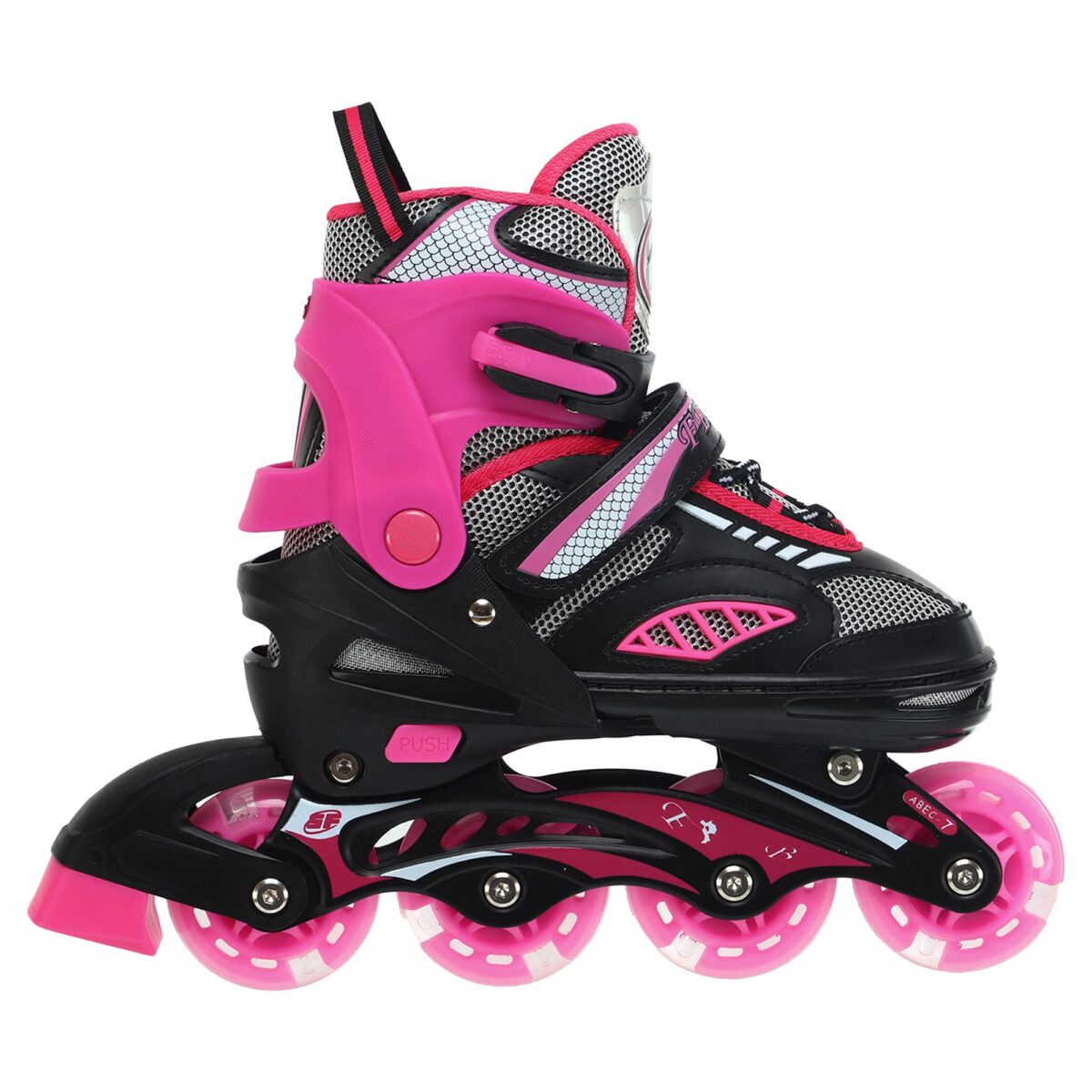 Ролики могут использовать взрослые и дети. Раздвижные роликовые коньки регулируются по размеру нажатием на специальную кнопку. Не нужно использовать шестигранники и что-то раскручивать. Раздвижная конструкция позволяет купить ролики без примерки.