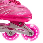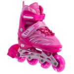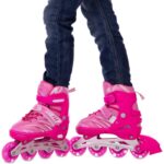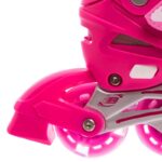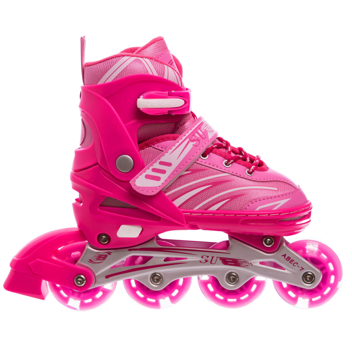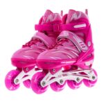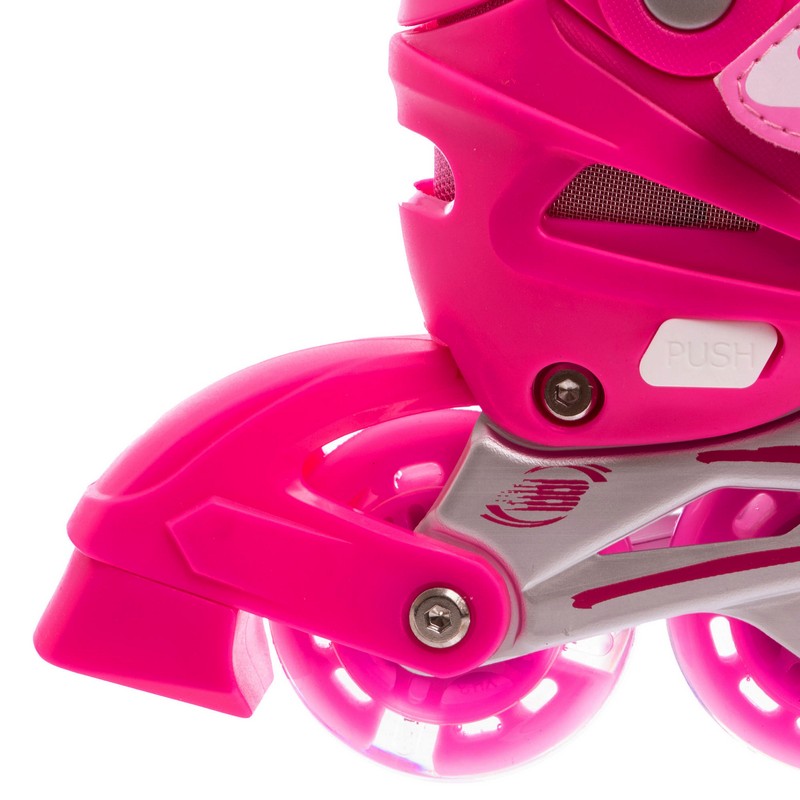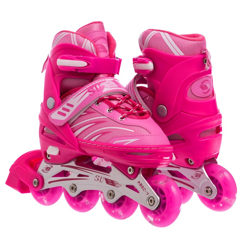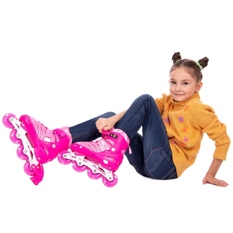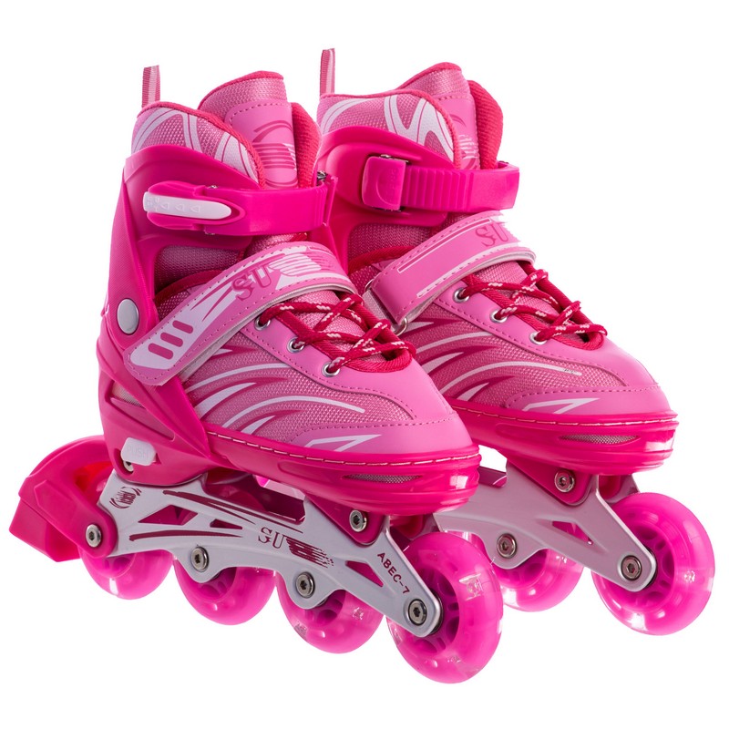 Ролики представлены несколькими размерами и цветами. Благодаря яркой расцветке и светящимся колесам они понравятся детям. Раздвижную конструкцию можно регулировать по мере роста ноги. Также ролики могут использовать и взрослые.