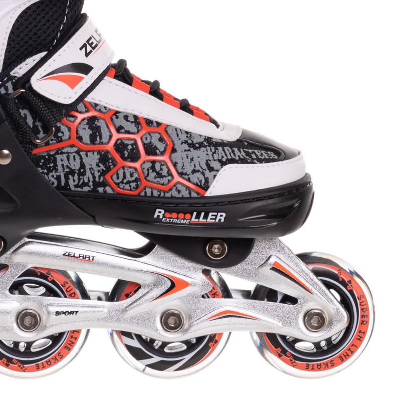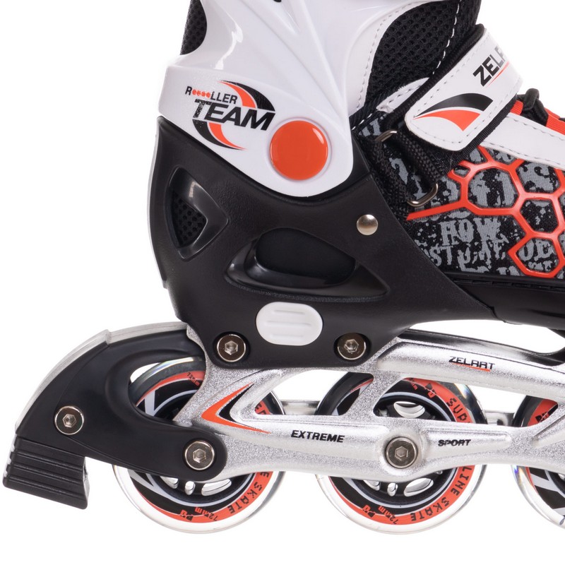 Ролики от бренда Zelart имеют стильный дизайн, они понравятся и взрослым и детям. Ботинок ролика состоит из кафа и лайнера. Первый элемент расположен в верхней части и изготовлен из пластика. Жесткий материал позволяет лучше передать усилие от толчка и не позволяет ноге ерзать в ботинке. Лайнер — это мягкая часть ботинка, изготовленная из полиэстера. Синтетический материал легко очищается от загрязнений, быстро высыхает и хорошо пропускает воздух. Лайнеры в этой модели роликовых коньков съемные.