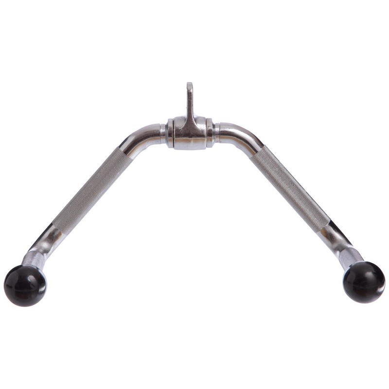 Аксессуар изготовлен из высококачественной стали, подвергнутой хромированию для защиты от коррозии. Имеет покрытые насечками области захватов, что предотвращает соскальзывание рук и позволяет спортсмену надёжно удерживать рукоять даже при работе с тяжёлыми весами. Благодаря вращающемуся подвесу трос не перегибается, и спортсмен контролирует траекторию своего движения во время выполнения упражнений.
