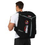 Объем рюкзака 48 л позволяет вместить спортивную экипировку разного размера, а также сменную обувь. Конструкция включает мягкие, регулируемые лямки, которые не давят на плечи, поясной ремень для снижения нагрузки на спину и удобную мягкую спинку. В местах соприкосновения с телом предусмотрены дышащие вставки. Сверху расположена удобная ручка для переноски в руках.