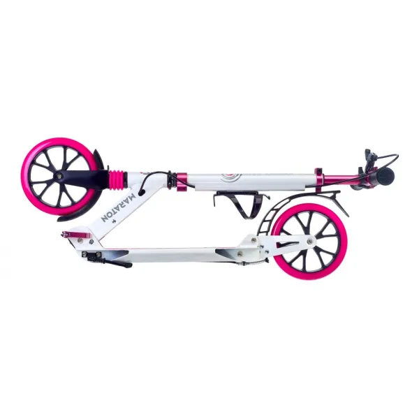 Городской самокат Maraton Decider имеет легкую систему складывания, а так же ремень для переноски, благодаря этому его удобно хранить и транспортировать.