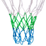 Баскетбольная сетка изготовлена методом узлового плетения из полипропиленового шнура диаметром 3 мм. Он обладает высокой прочностью на разрыв и устойчивостью к износу. Шнур сохраняет форму при любых погодных условиях, не растягивается и не выгорает на солнце. Благодаря гладкой поверхности, сетка не повреждает мяч во время попадания в кольцо.