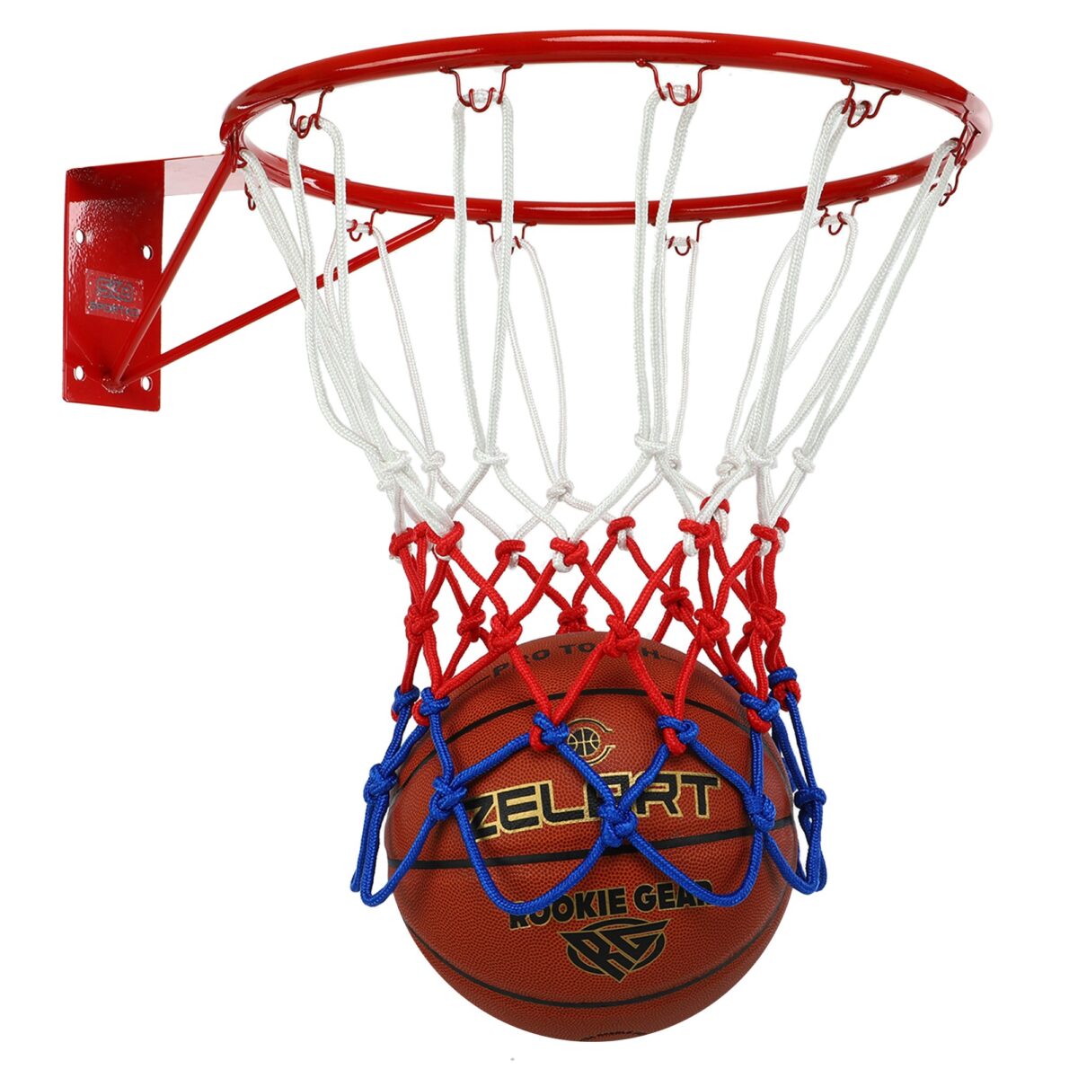 Баскетбольная сетка изготовлена из прочного синтетического шнура. В производстве используется полиэстер — долговечный материал, который не растягивается со временем, отличается устойчивостью к влияниям внешней среды. Благодаря этому сетку можно использовать как на закрытых, так и на уличных площадках.