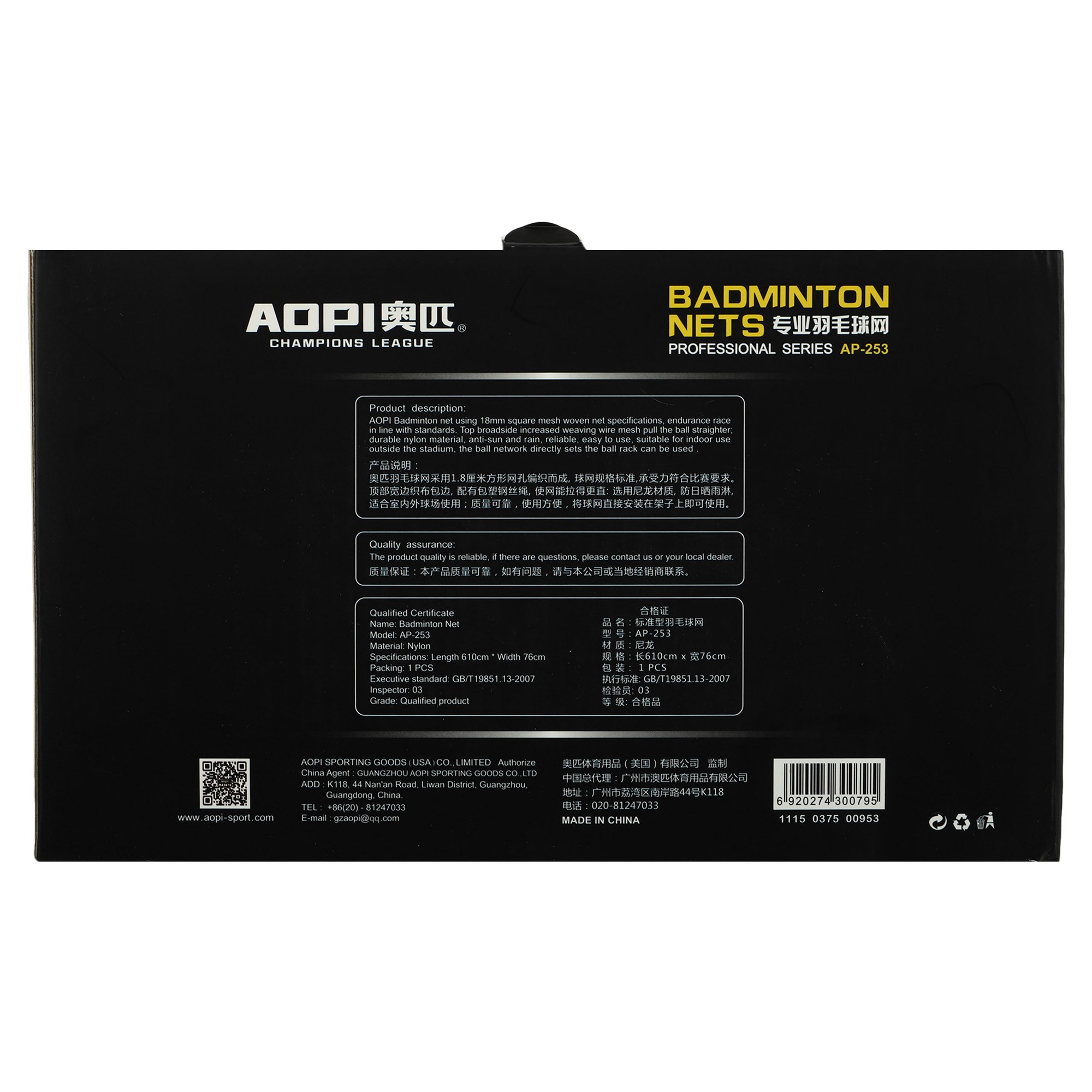 Сетка для бадминтона от AOPI — это спортивный инвентарь профессиональной серии. Сетка изготовлена с учетом правил игры и требований Всемирной федерации бадминтона (BWF).