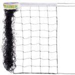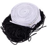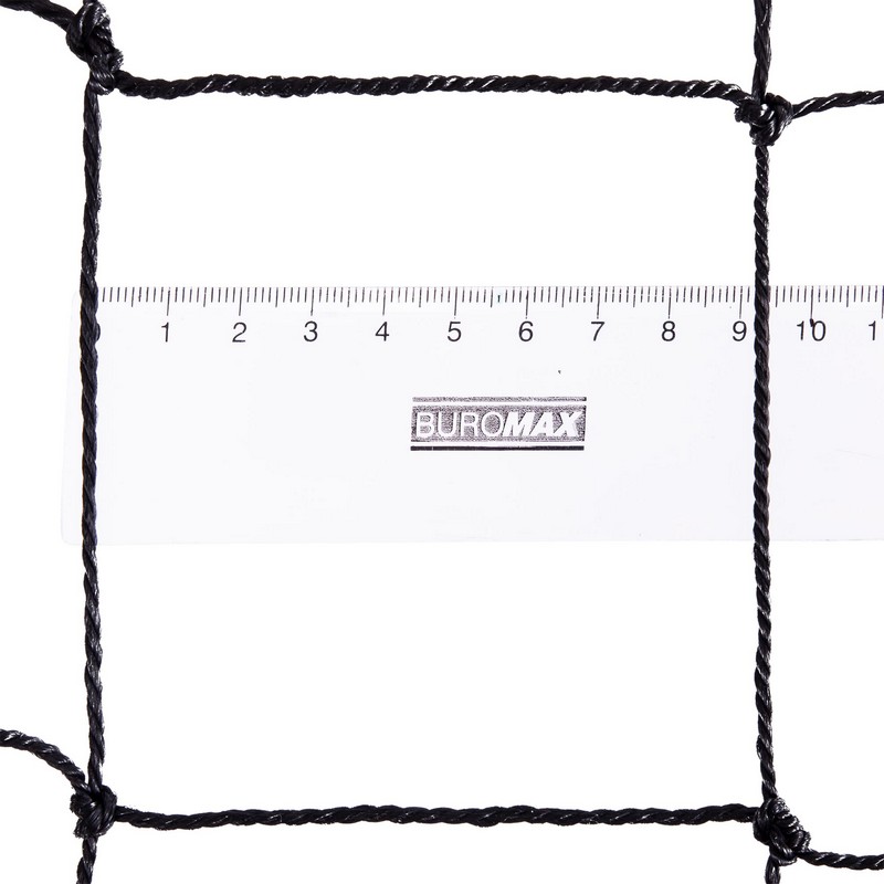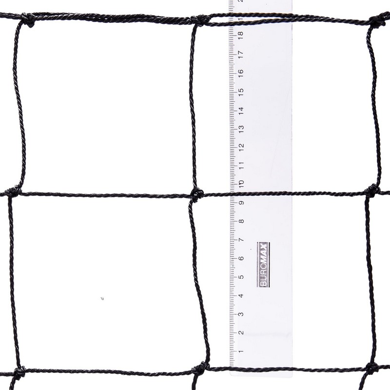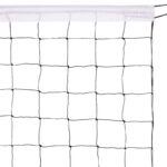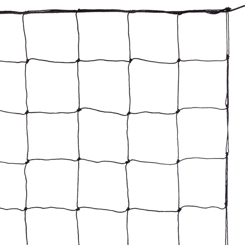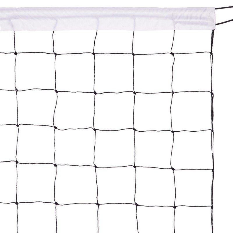 Сетка для волейбола изготовлена из полипропилена. Этот материал устойчив к УФ-излучению и не впитывает влагу. Применять его можно как в помещении, так и на улице. Полотно сетки изготовлено метолом узлового плетения из шнура оптимальной толщины — 2,5 мм. Для волейбольных сеток нормальным считается значение в пределах 2,2-3 мм. Шнур такой толщины обеспечивает достаточную прочность, но при этом сетка не весит слишком много.