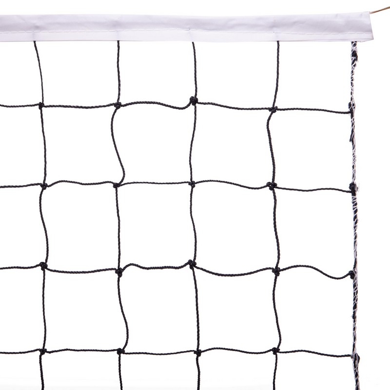 Сетка изготовлена из прочного полипропилена, который обеспечивает высокую стойкость к износу и атмосферным воздействиям. Её размер составляет 9,5×1 метра, что соответствует официальным размерам игрового поля для волейбола. Обладает ячейками размером 12×12 сантиметров, что обеспечивает оптимальное соотношение между прочностью и видимостью игры. Толщина шнура составляет 3 миллиметра, что делает её надежной и устойчивой к механическим воздействиям. Сетка оснащена металлическим тросом, который обеспечивает стабильное натяжение и удерживает её в правильном положении. Это гарантирует, что сетка останется натянутой даже во время интенсивных игр и тренировок.