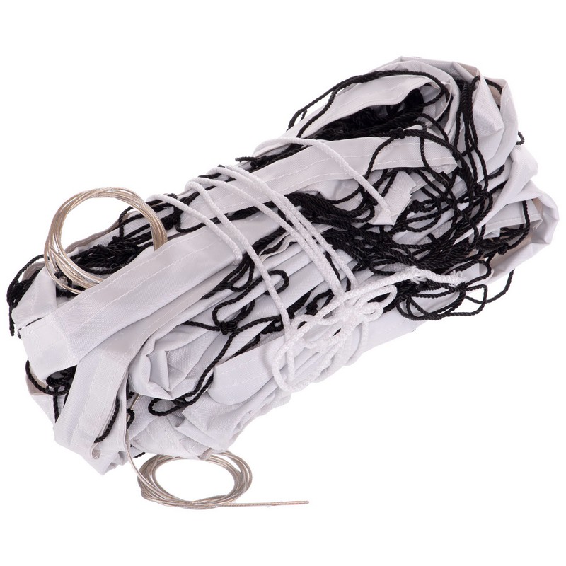 Инвентарь оснащен прочным тросом, который обеспечивает надежное крепление и стабильность сетки во время использования. Это позволяет сетке сохранять свою форму и натяжение даже при интенсивной игре, гарантируя комфорт и удобство для игроков.