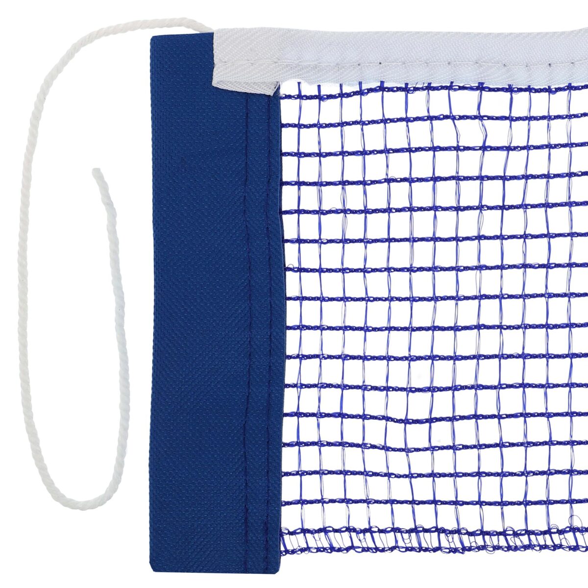 Спортивный аксессуар не комплектуется креплением на стол. Его нужно покупать отдельно. Сетку можно использовать на столах любого размера. Сетка окрашена в синий цвет. Она хорошо видна на фоне стола. Верх сетки окрашен в белый цвет. Благодаря такому решению игрокам будет легче ориентироваться в разметке игрового поля.