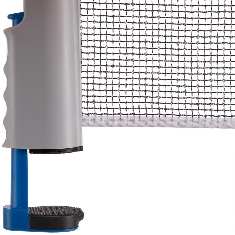 Для изготовления сетки используется высококачественный нейлон, который отличается прочностью и устойчивостью к деформации. За счёт этих качеств она длительное время сохраняет свою форму и не растягивается. Концы сетки закреплены на оснащённых пружинами катушках, которые помещены в небольшие контейнеры, выполняющие функцию стоек и креплений. Пружины в контейнерах обеспечивают сетке натяжение, а также втягивают её внутрь после использования. На столе вся эта конструкция закрепляется с помощью прижимных кнопок, обеспечивающих надёжную фиксацию.