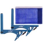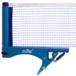 Для изготовления сетки используется высококачественный нейлон – прочный материал, который способен выдержать воздействие влаги, при этом не растягивается и не деформируется. Верхняя кромка сетки обшита белой тесьмой. Помимо того, что этого требуют правила настольного тенниса, она придаёт сетке жёсткость и предотвращает её растрёпывание. Сетка фиксируется на стойках металлических креплений, которые в свою очередь устанавливаются на столе. Клипсовый механизм фиксации креплений отличается надёжностью и простотой – достаточно просто защёлкнуть его на краю стола.