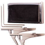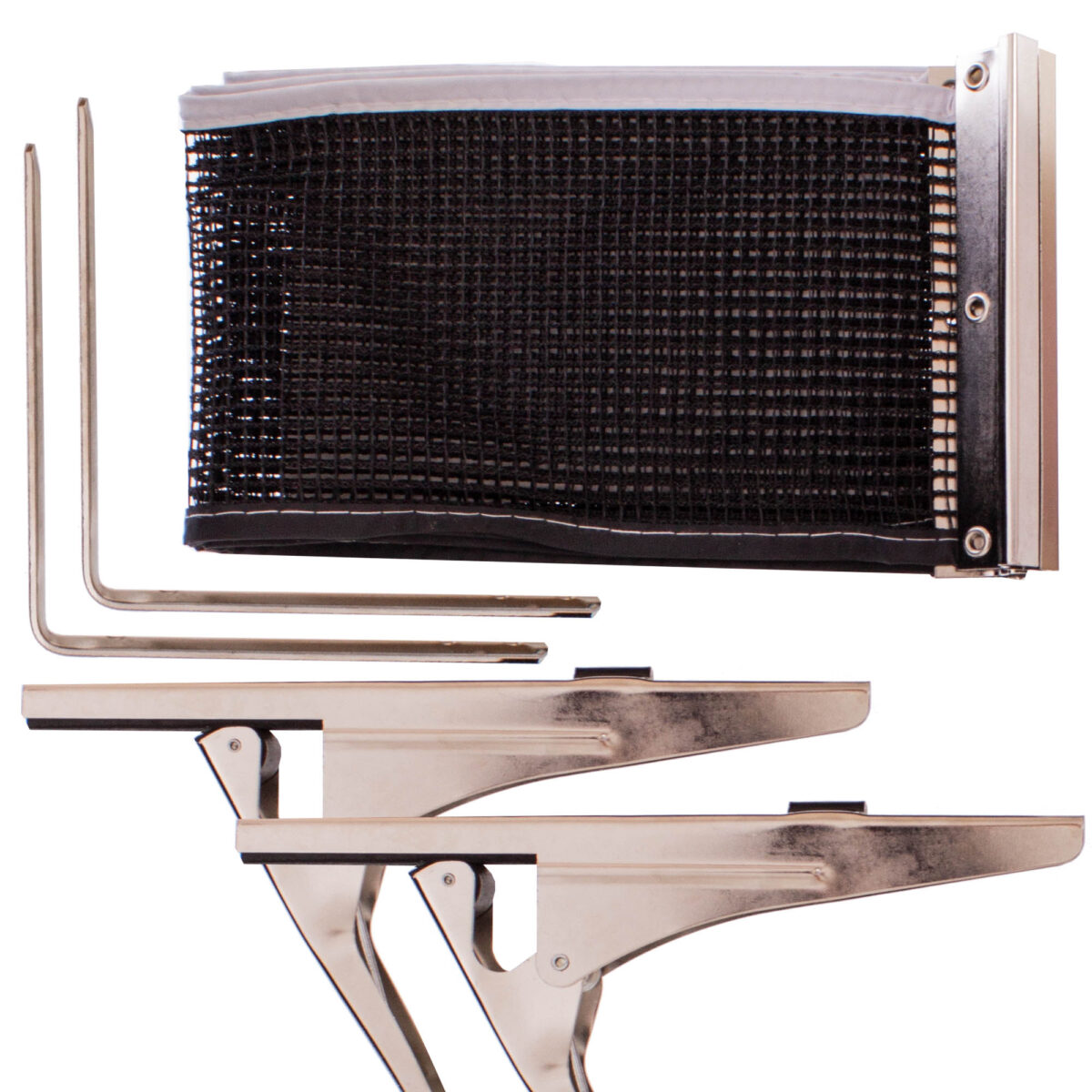 Сетка изготовлена из высококачественного нейлона устойчивого к механическим повреждениям, деформации и влаге. На её торцах имеются металлические разъёмы, которые надеваются на стойки, закрепляемые в креплениях таким образом, чтобы можно было отрегулировать длину сетки. Крепления устанавливаются на стол посредством клипсовых зажимов с резиновыми прокладками, которые обеспечивают надёжную фиксацию. Также они предохраняют поверхность стола от царапин. Для хранения и переноски сетки предусмотрен чехол из поливинилхлорида с замком-молнией и удобной ручкой.