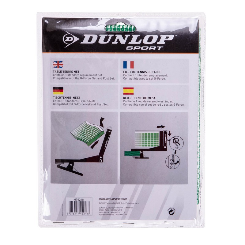 Нейлоновая сетка для настольного тенниса от DUNLOP легко устанавливается на стол шириной до 182 см. Степень натяжения сетки можно регулировать с помощью специального тросика. Тросик проходит через всю длину сетки и выходит по ее краям. Сетка комплектуется парой крючков, с помощью которых тросик можно зацепить за крепление сетки.