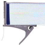 Сетка изготовлена из высококачественного нейлона, благодаря прочности и износостойкости которого она не растягивается и не деформируется в процессе интенсивной эксплуатации. Этот материал также не восприимчив к воздействию солнца и влаги, что положительно сказывается на её долговечности. Установка сетки на столе осуществляется с помощью металлических креплений с зажимами-клипсами. Они просты в использовании, но при этом обеспечивают устойчивость и чрезвычайно надёжную фиксацию.