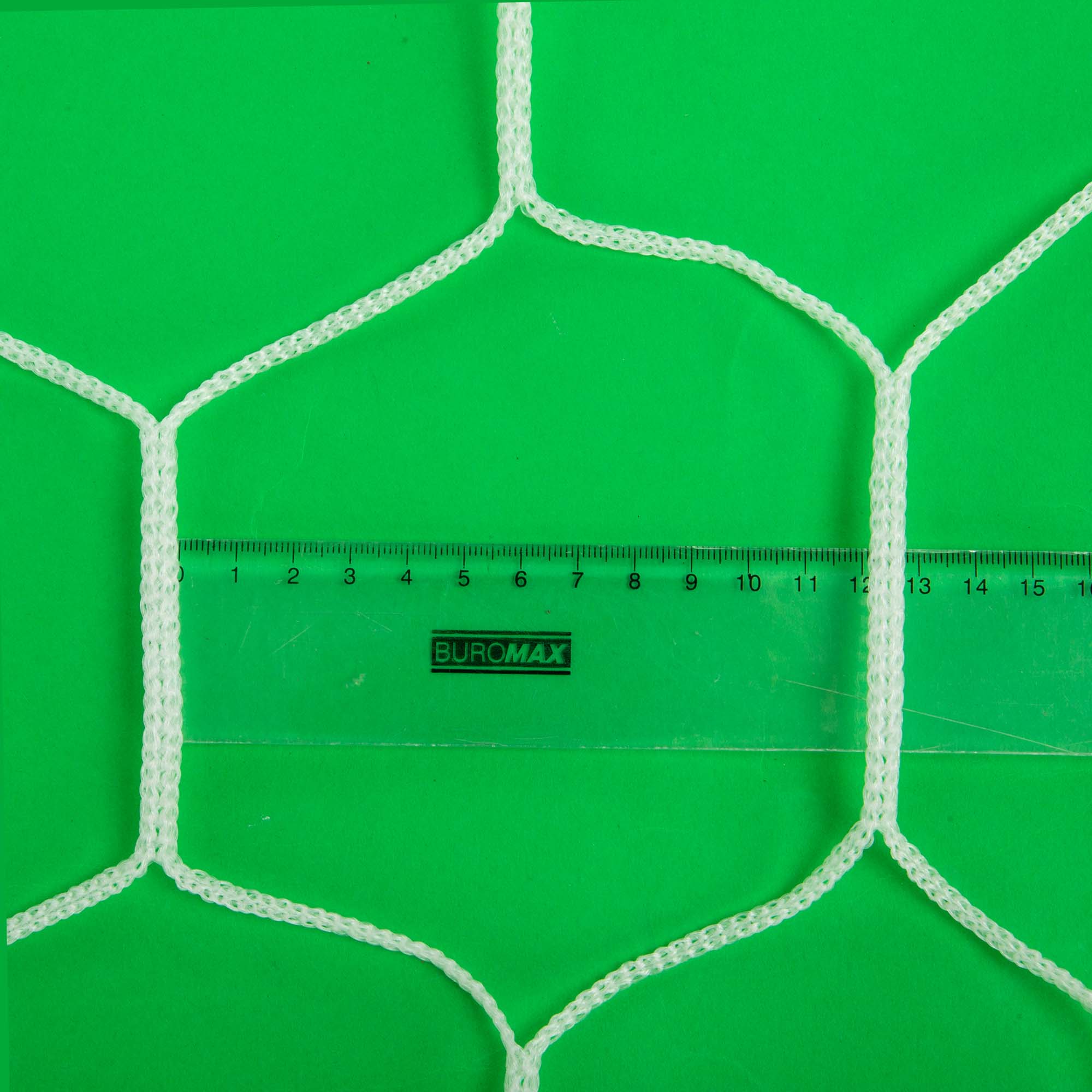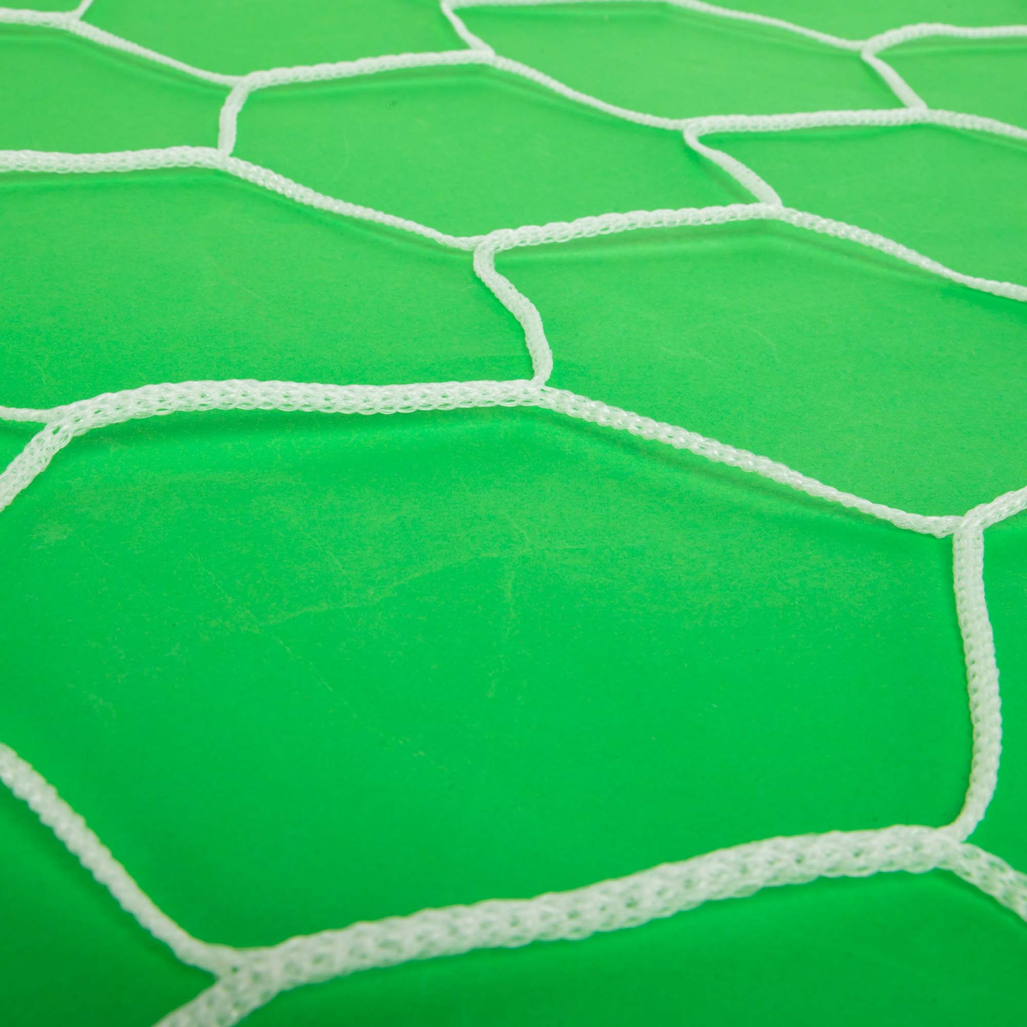 CIMA представляет собой комплект из двух сеток, которые крепятся на футбольные ворота, обеспечивая их полноценную защиту и удобство эксплуатации. Главное отличие этой модели — это шестиугольная форма ячейки, напоминающая соты, которая не только эстетически привлекательна, но и способствует равномерному распределению нагрузки при ударах по воротам. Размер ячеек составляет 7,5х7,5 см, что гарантирует надежное удержание мячей различных размеров, предотвращая их пролет сквозь сетку.