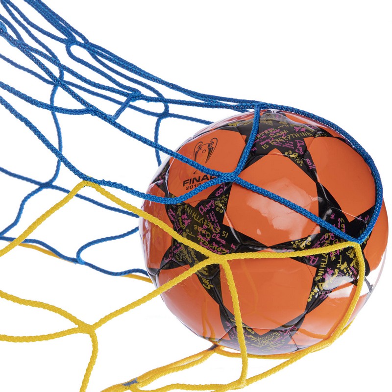 Сетка на ворота футбольные в комплекте из 2 штук ЕВРО ЭЛИТ 1,5 2,6х7,5м 2шт желтый-синий