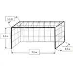 Сетка может использоваться для ворот стандартного размера. Её длина составляет 7,5 м. Сетка подходит для тренировок как взрослых спортсменов, так и детей. Благодаря высокой прочности материала она способна выдержать удары любой силы.