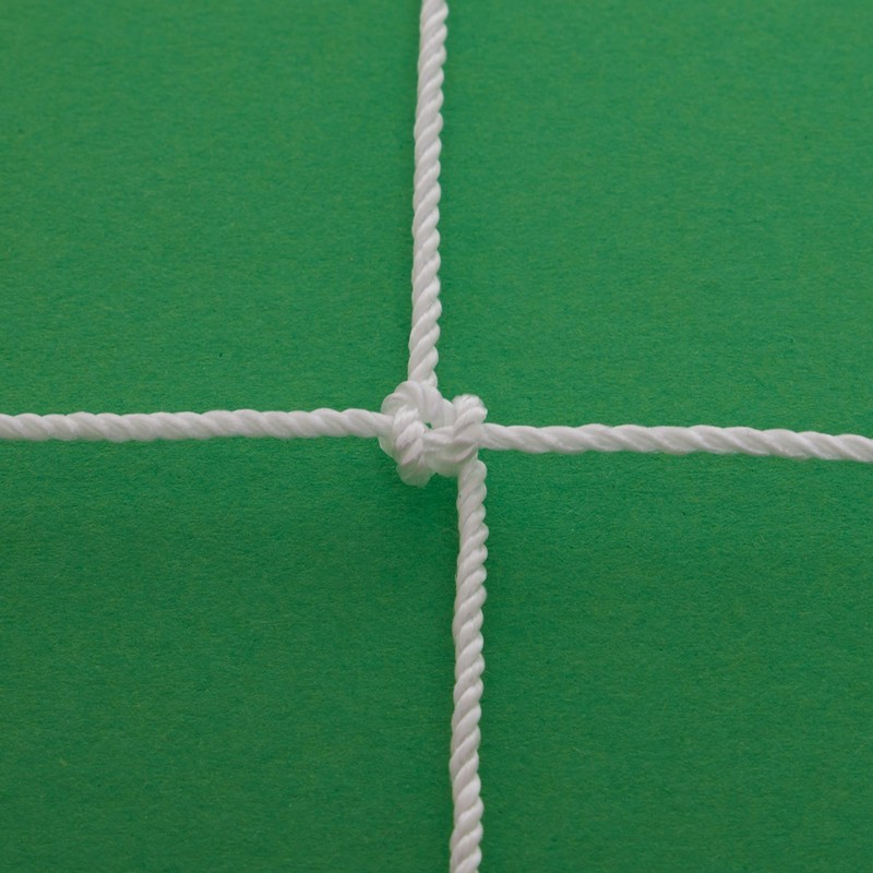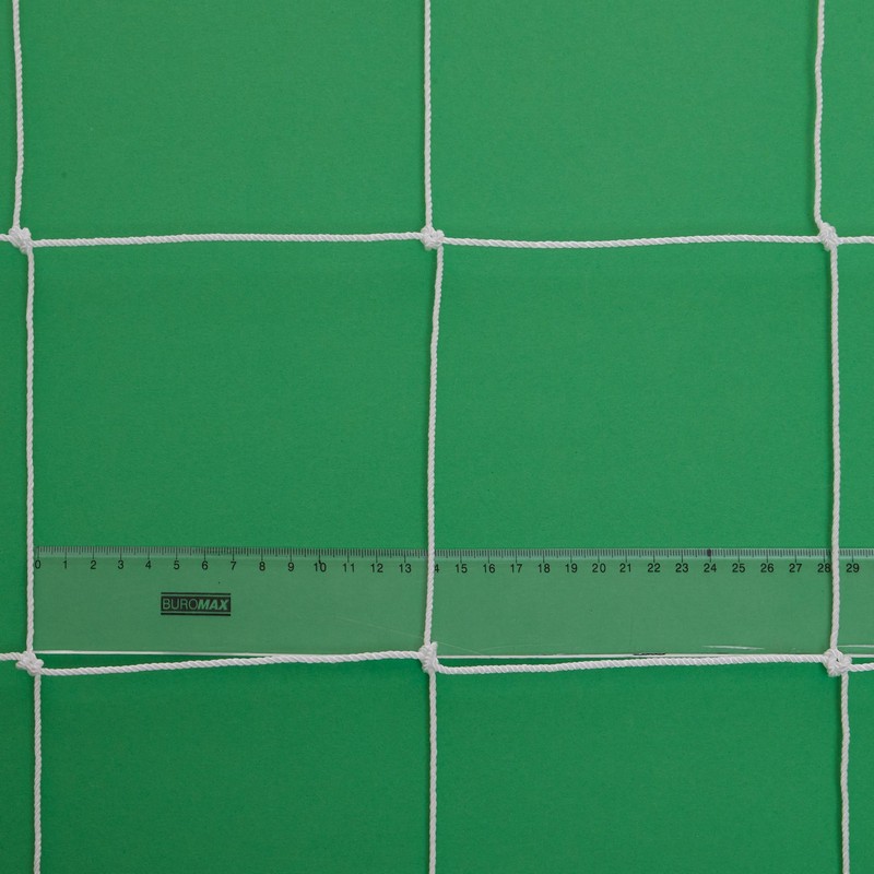 Сетка для футбольных ворот изготовлена из качественного сырья чешского поставщика технического текстиля и имеет большой запас прочности. Толщина шнура составляет 2,2 мм, чего достаточно, чтобы изделие выдерживало удары мяча. Сетка изготовлена методом узлового плетения и имеет квадратные ячейки размером 15х15 см.